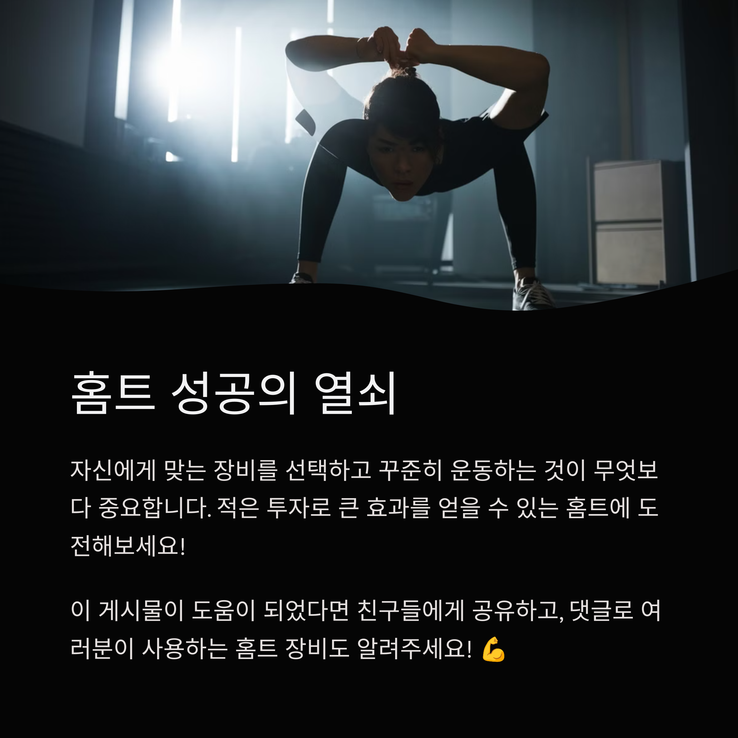 여러분이 추천하는 가성비 홈트 장비는 무엇인가요? 댓글로 여러분의 경험을 공유해 주세요!