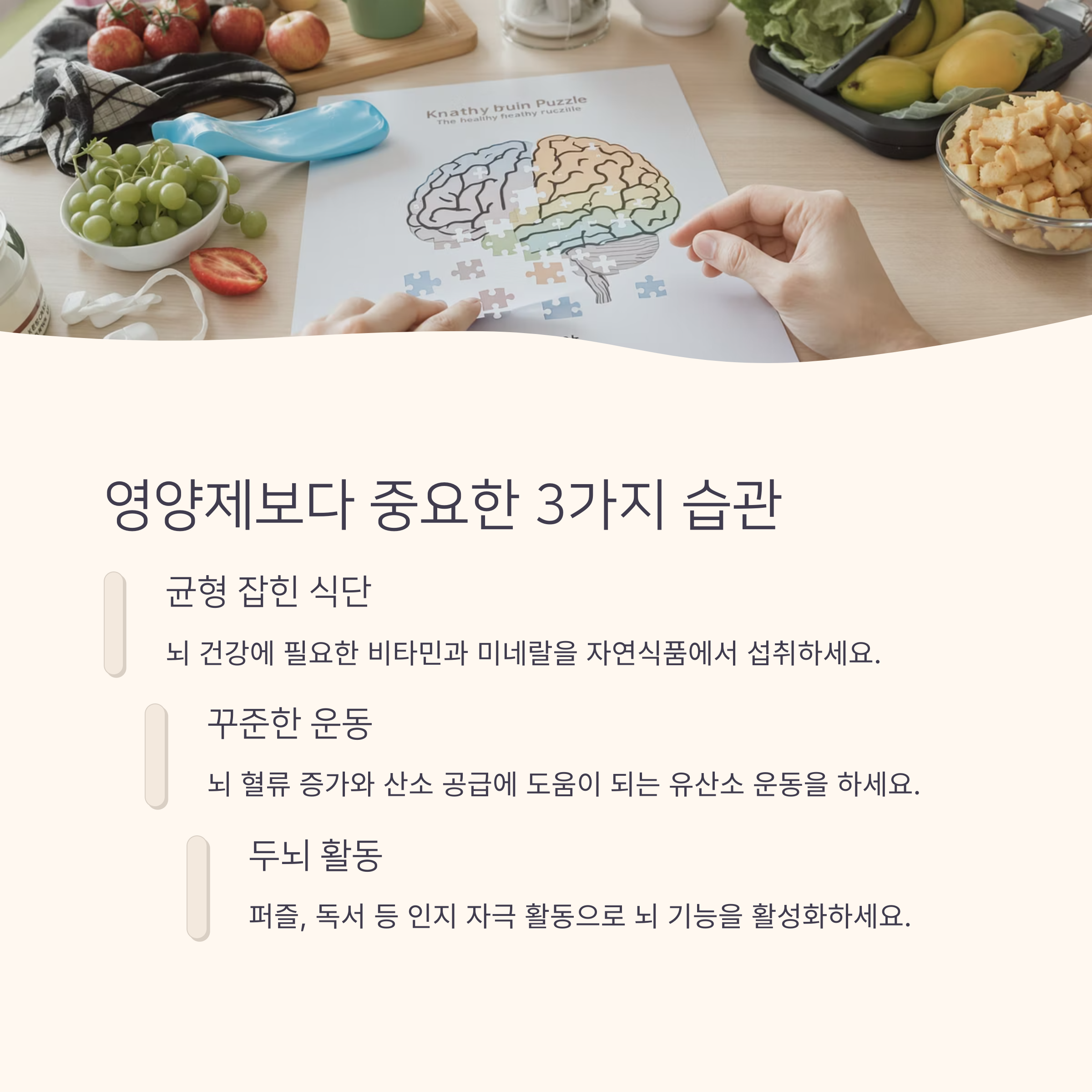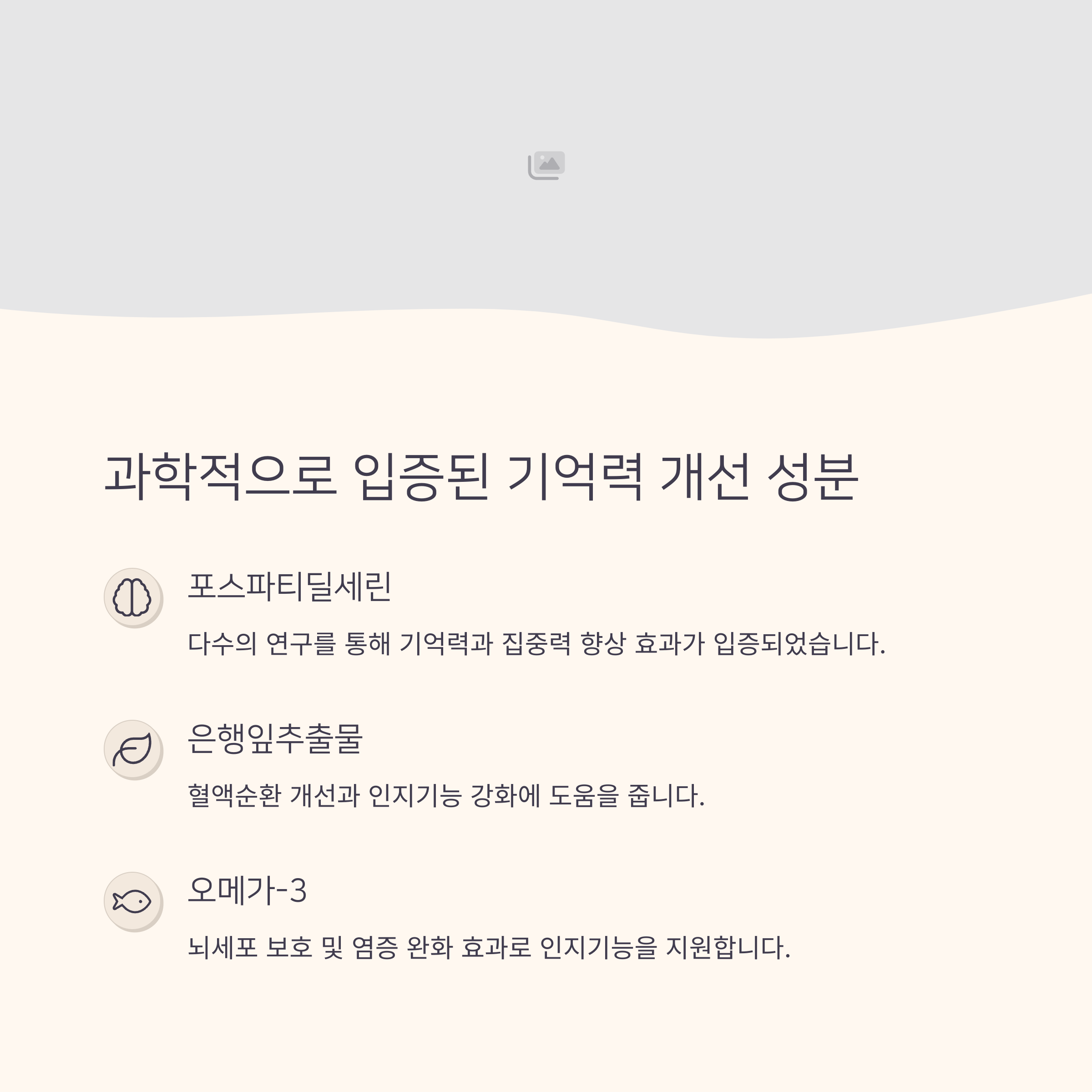 | 기억력 개선 영양제 | 다양한 성분의 시너지로 인지력 향상에 도움 |
