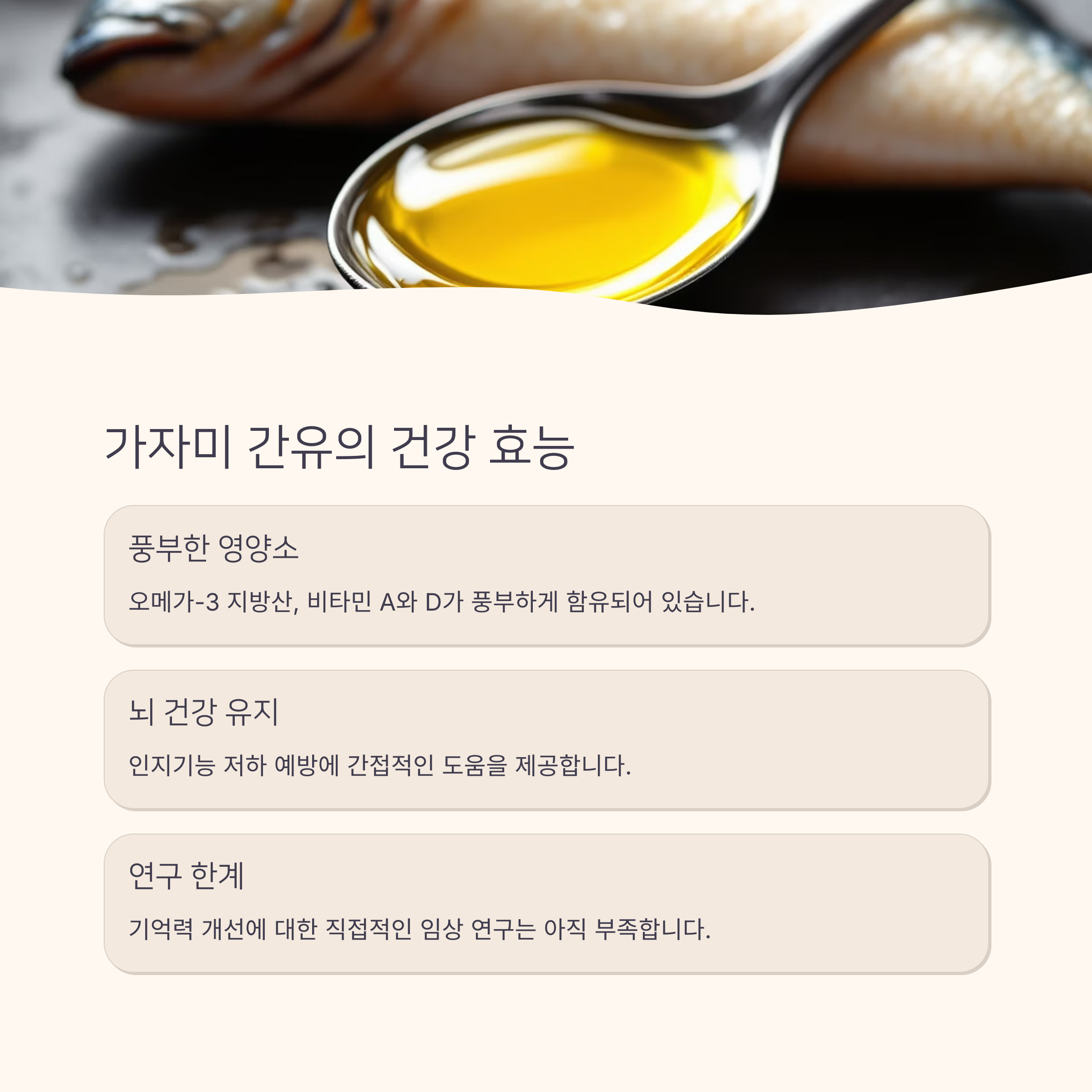 그렇다면 가자미 간유는 실제로 기억력 개선에 어떤 역할을 할까요? 현재까지 국내외에서 가자미 간유 자체에 대한 임상 연구는 부족한 편입니다. 하지만 이 간유에 함유된 오메가-3(EPA, DHA), 비타민 A와 D는 이미 여러 연구에서 뇌혈관 건강 및 인지기능 유지에 도움을 주는 것으로 간접적으로 확인된 바 있습니다. 특히 오메가-3는 뇌의 염증을 억제하고 신경세포의 건강을 유지하는 데 중요한 역할을 하며, 장기적으로 인지 저하 속도를 늦추는 데 기여할 수 있습니다. 따라서 가자미 간유는 단독으로 기억력 향상을 기대하기보다는, 보조적인 기능을 가진 영양제로 보는 것이 합리적입니다.