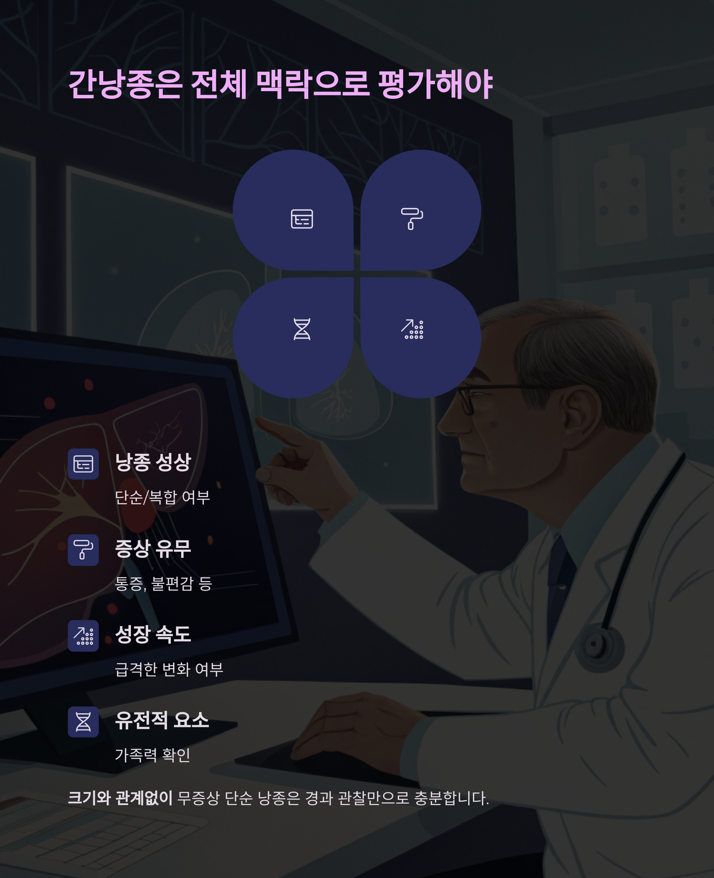 이 글에서는 간낭종 진단 시 크기 외에 더 중요하게 평가해야 할 요소들에 대해