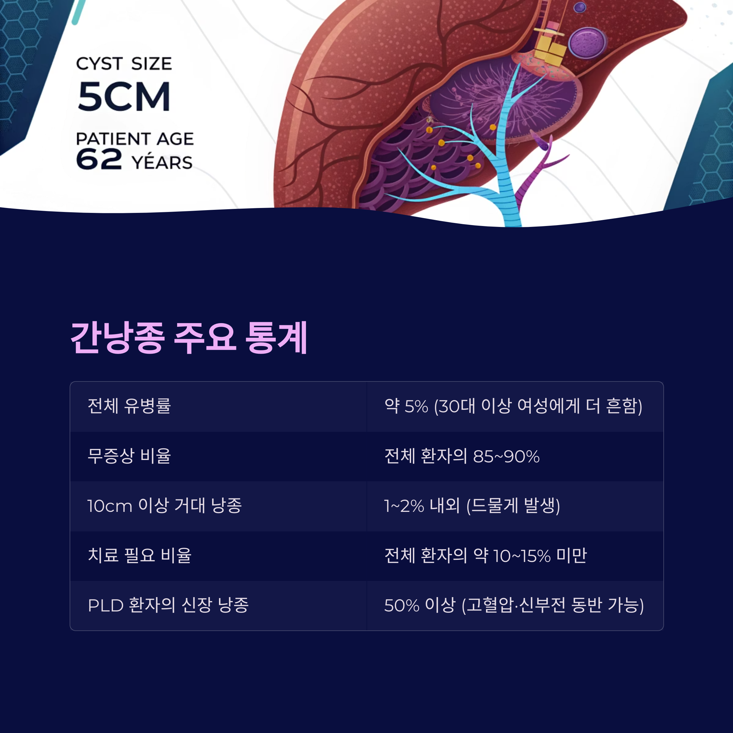 | PLD 환자의 신장 낭종 동반율 | 50% 이상 (고혈압·신부전 동반 가능) |