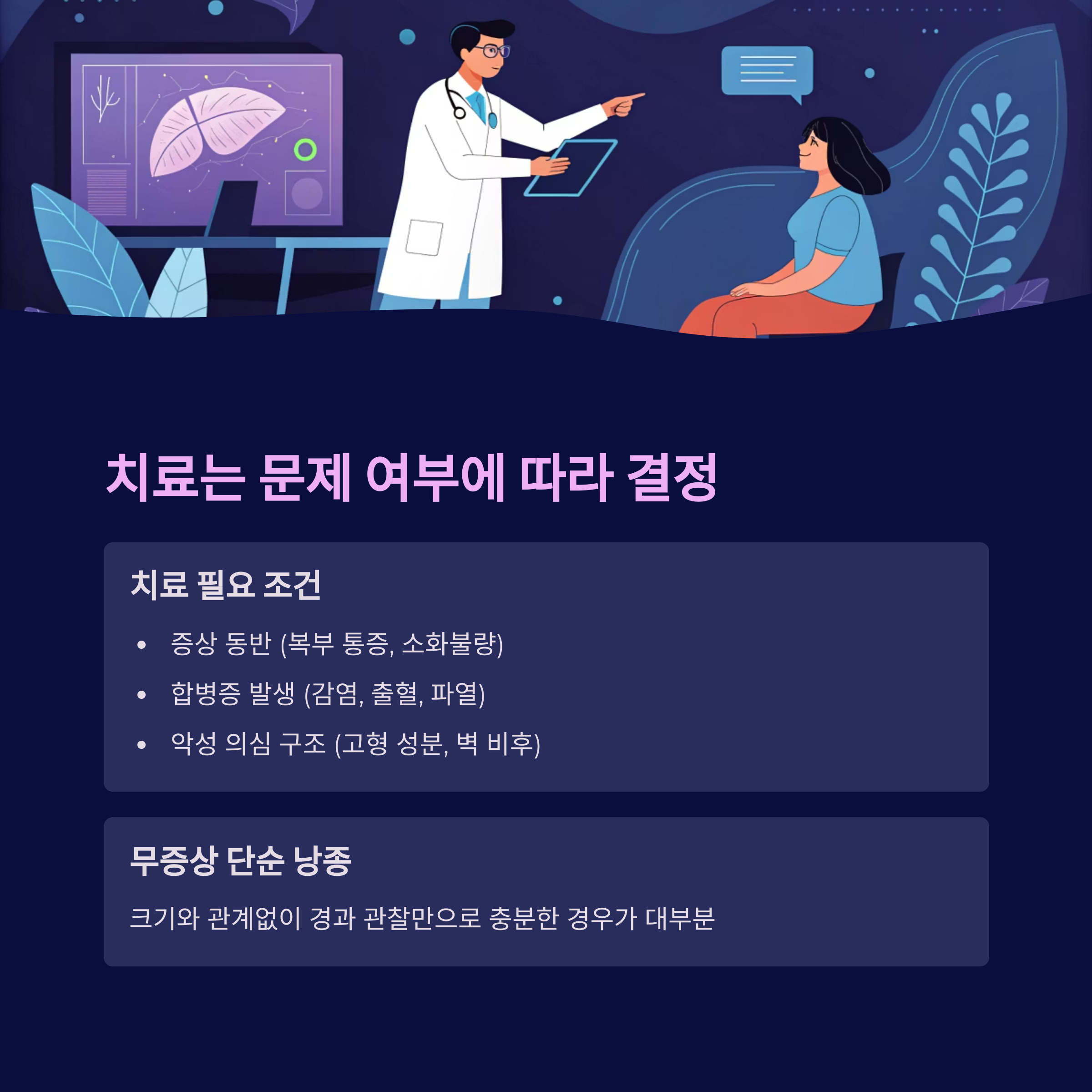 반대로 2cm 에서 3cm의 작은 낭종이라도 통증이나 소화불량이 동반되면