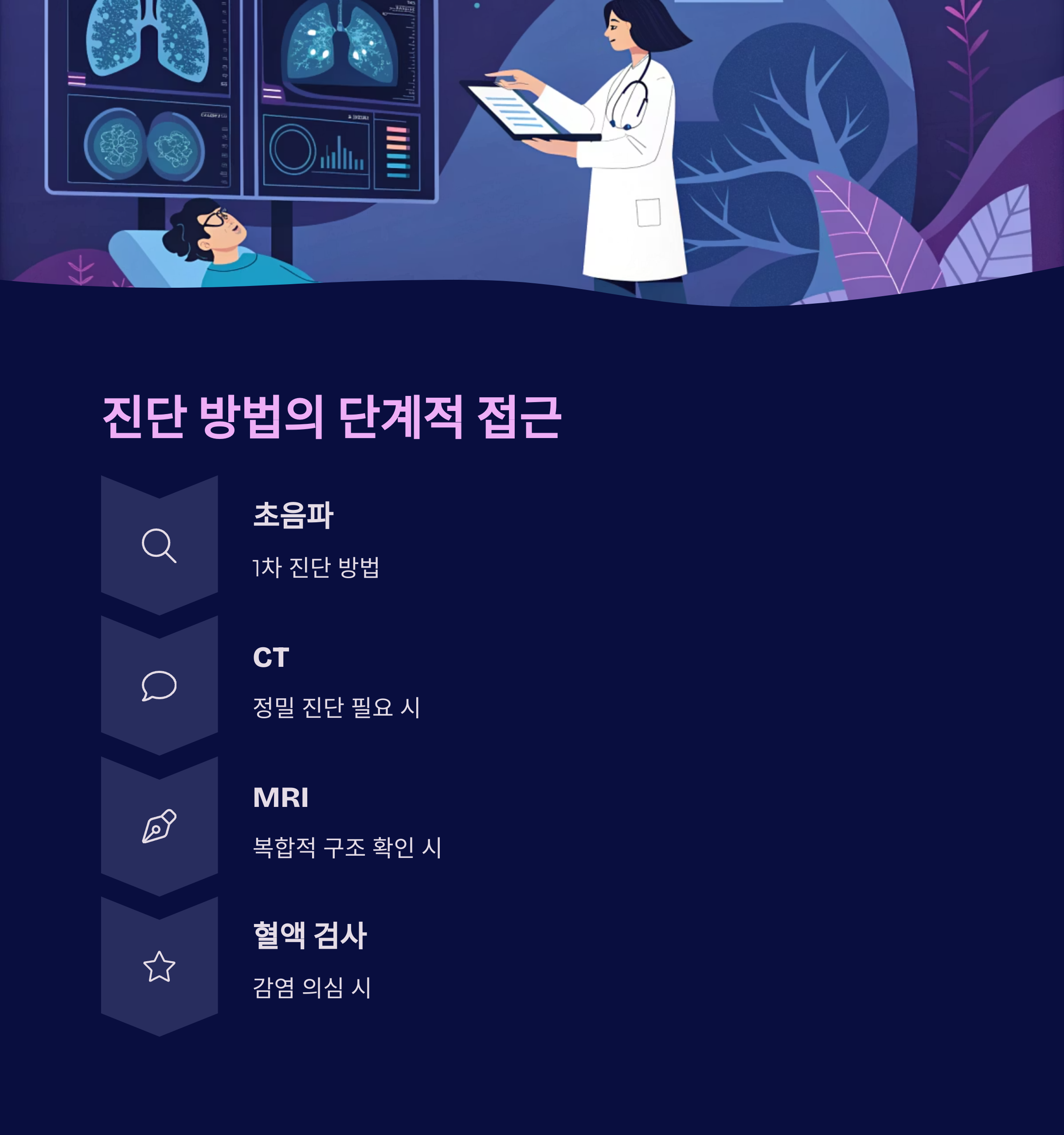 진단 방법은 초음파부터, 필요시 CT·MRI까지 확장