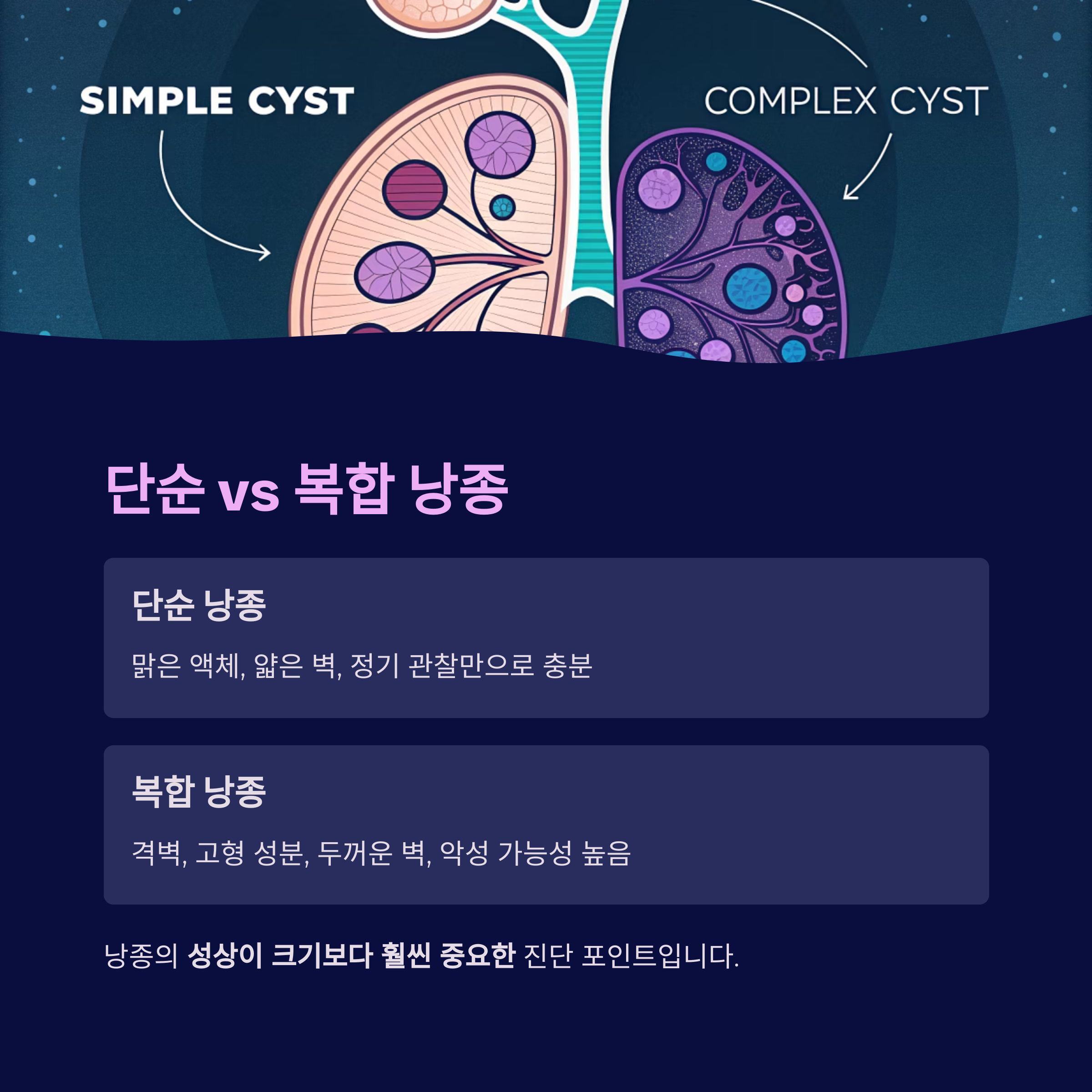 단순 낭종과 복합 낭종의 차이가 핵심이다