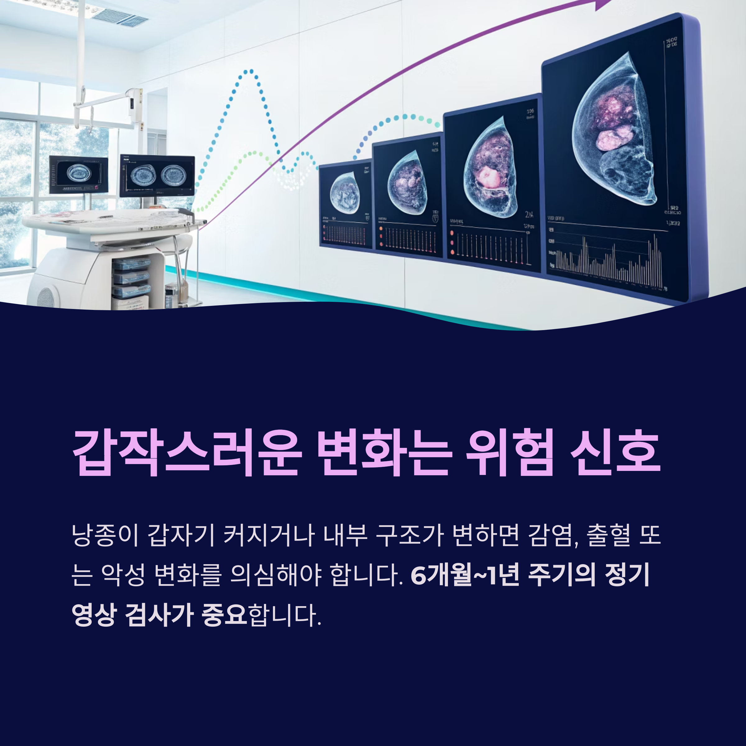 간낭종이 갑자기 커지거나 내부 구조에 변화가 생기면