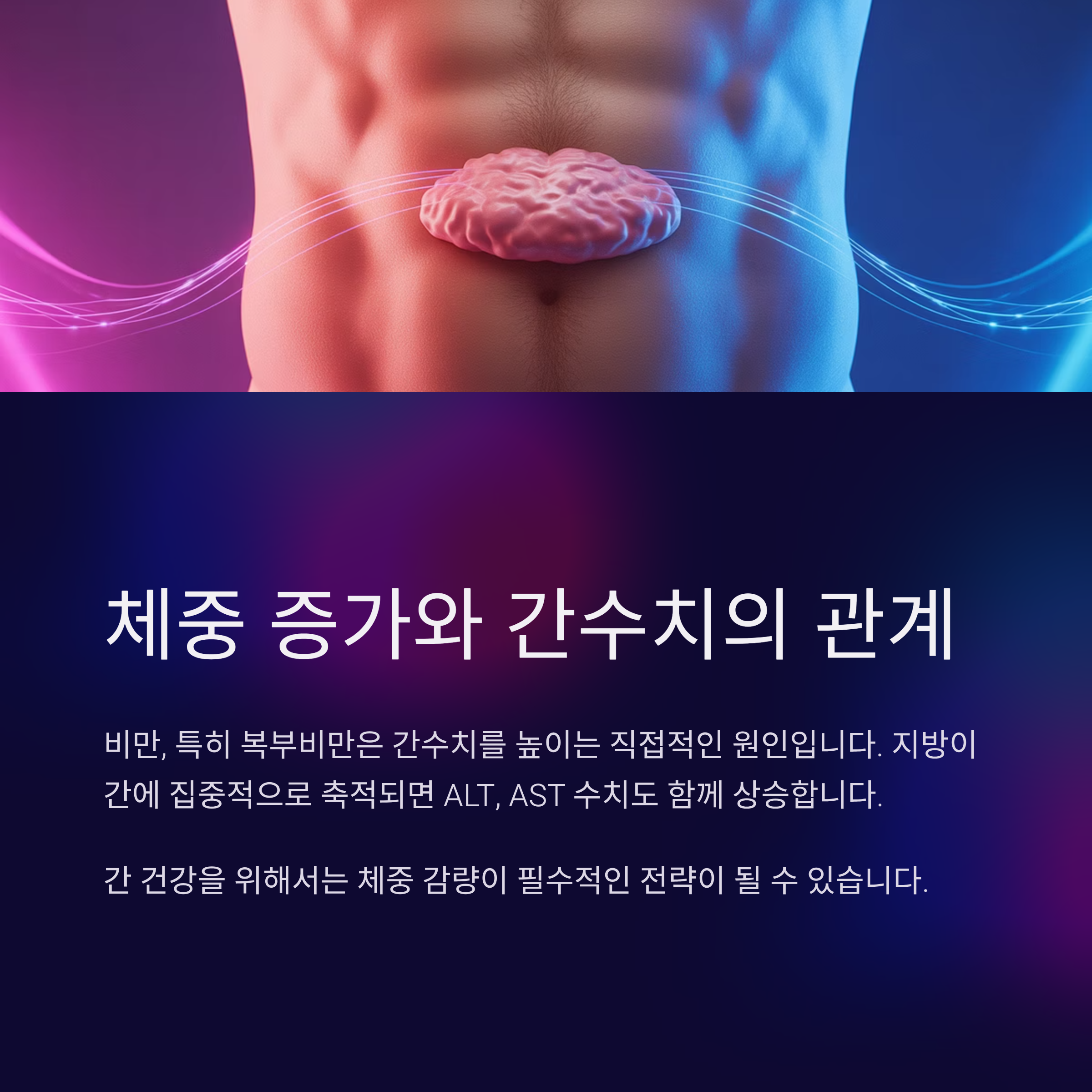 비만은 간수치를 높이는 직접적인 원인 중 하나입니다.