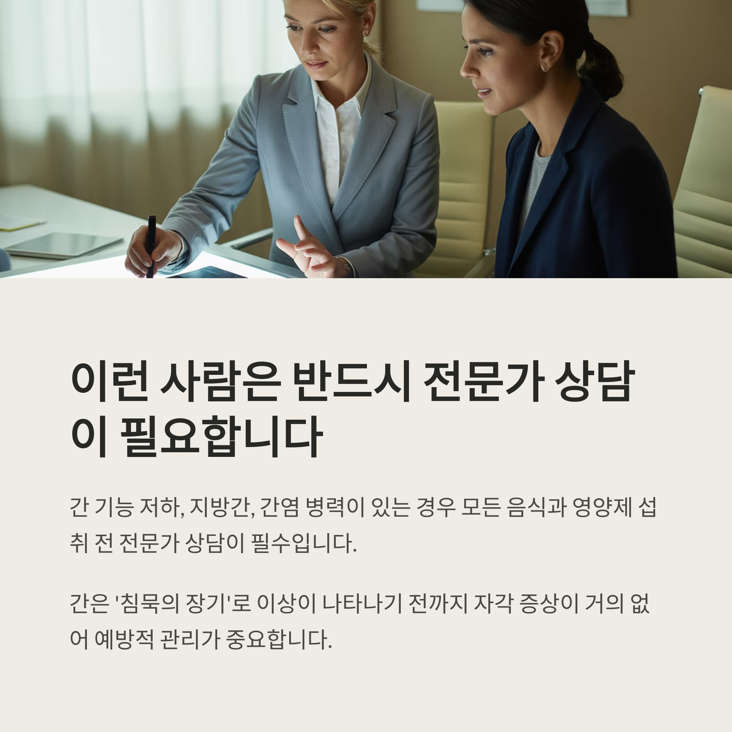 다만, 고용량 복용이나 다른 보조제와의 병용은 간 기능 저하를 유발할 수 있으므로