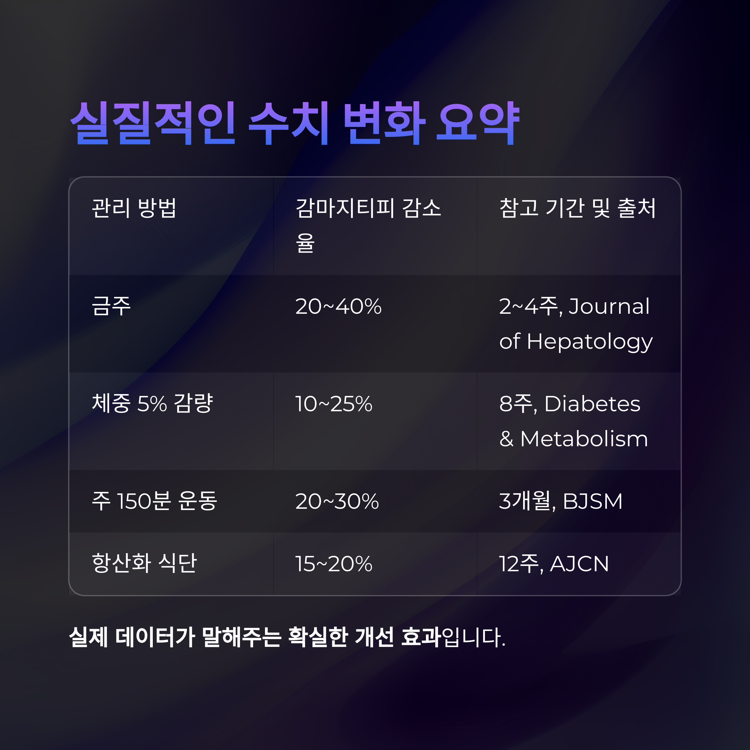 관리 방법 감마지티피 감소율 참고 기간 및 출처