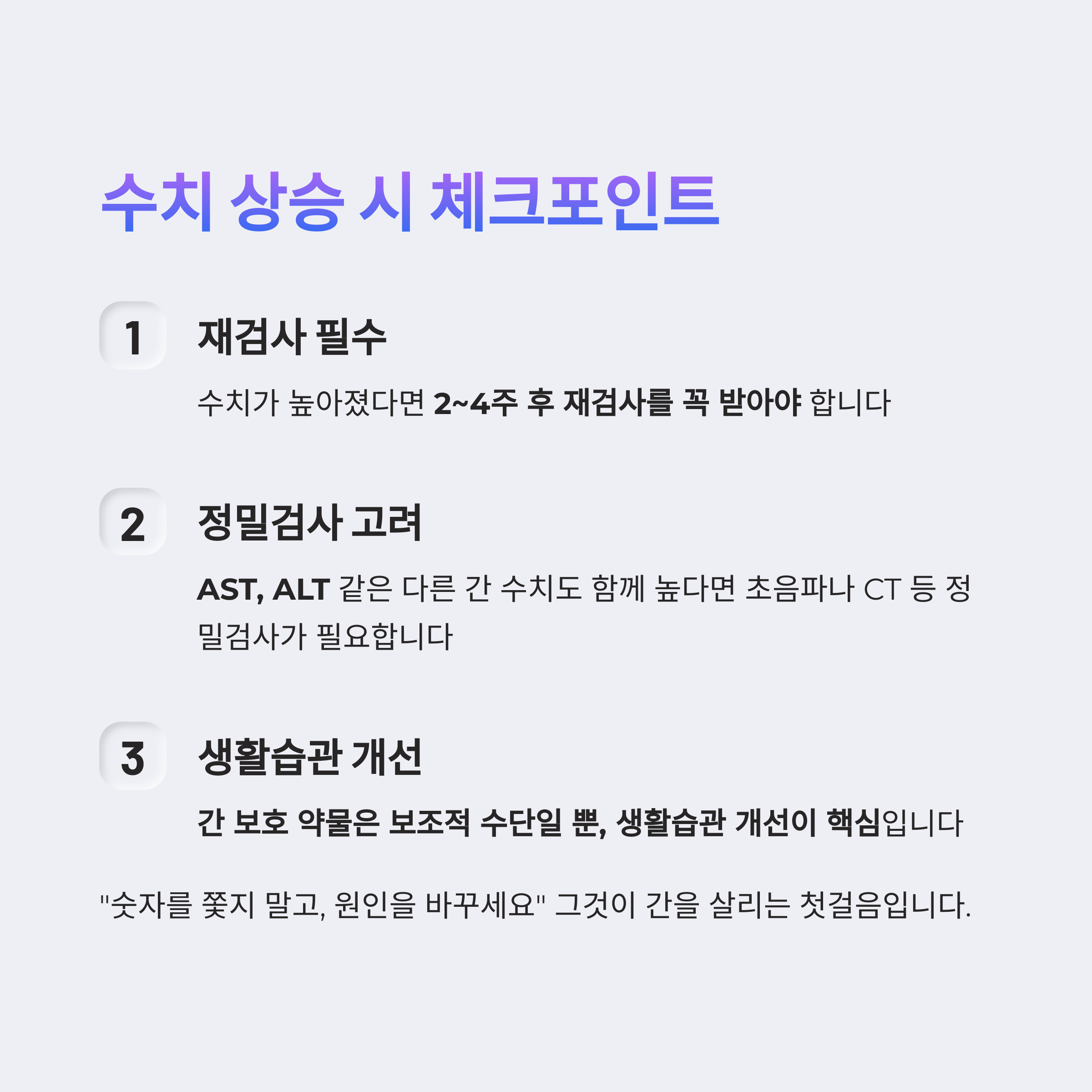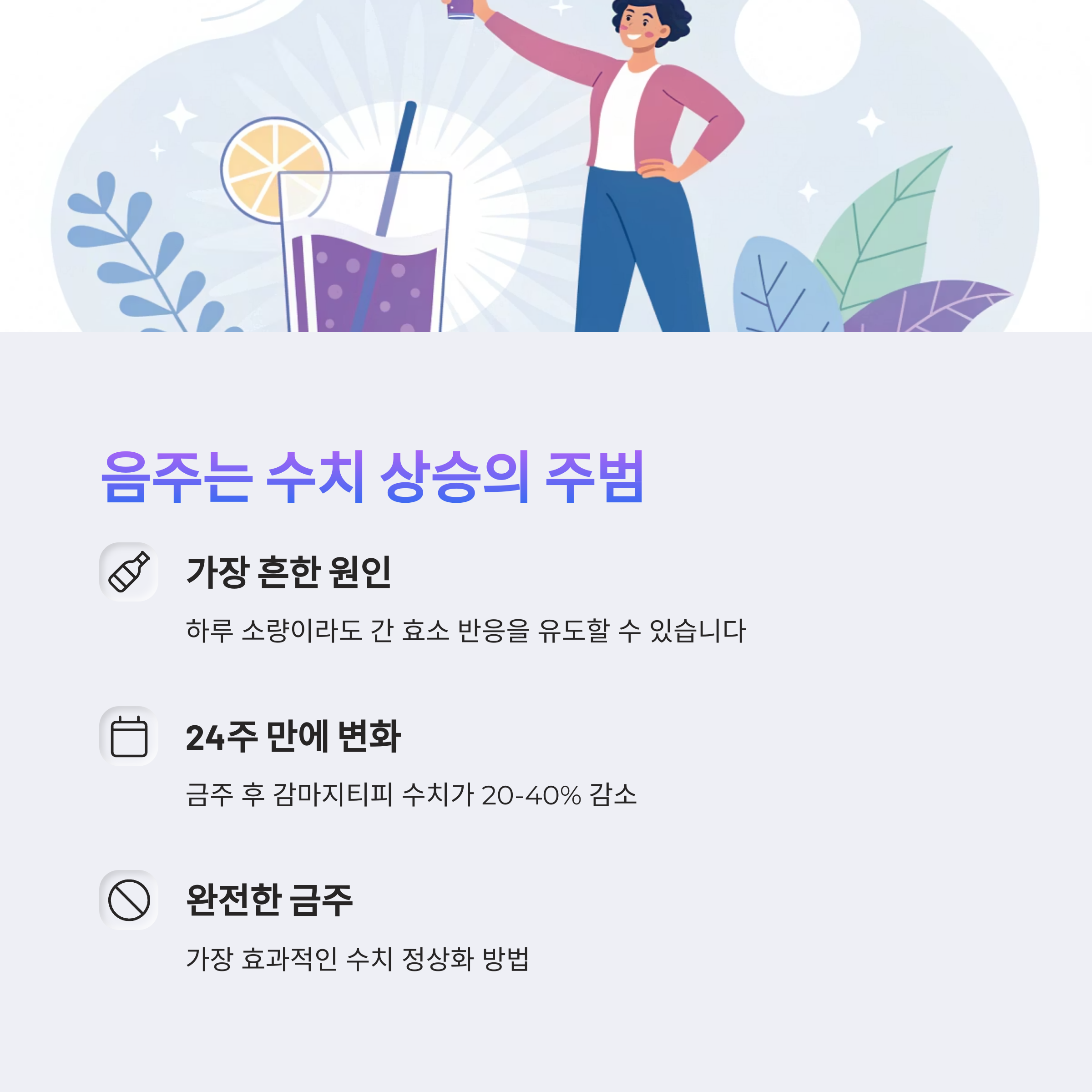 비정상 수치는 음주, 비만, 약물, 대사 문제 등 다양한 원인을 의미할 수 있으며,