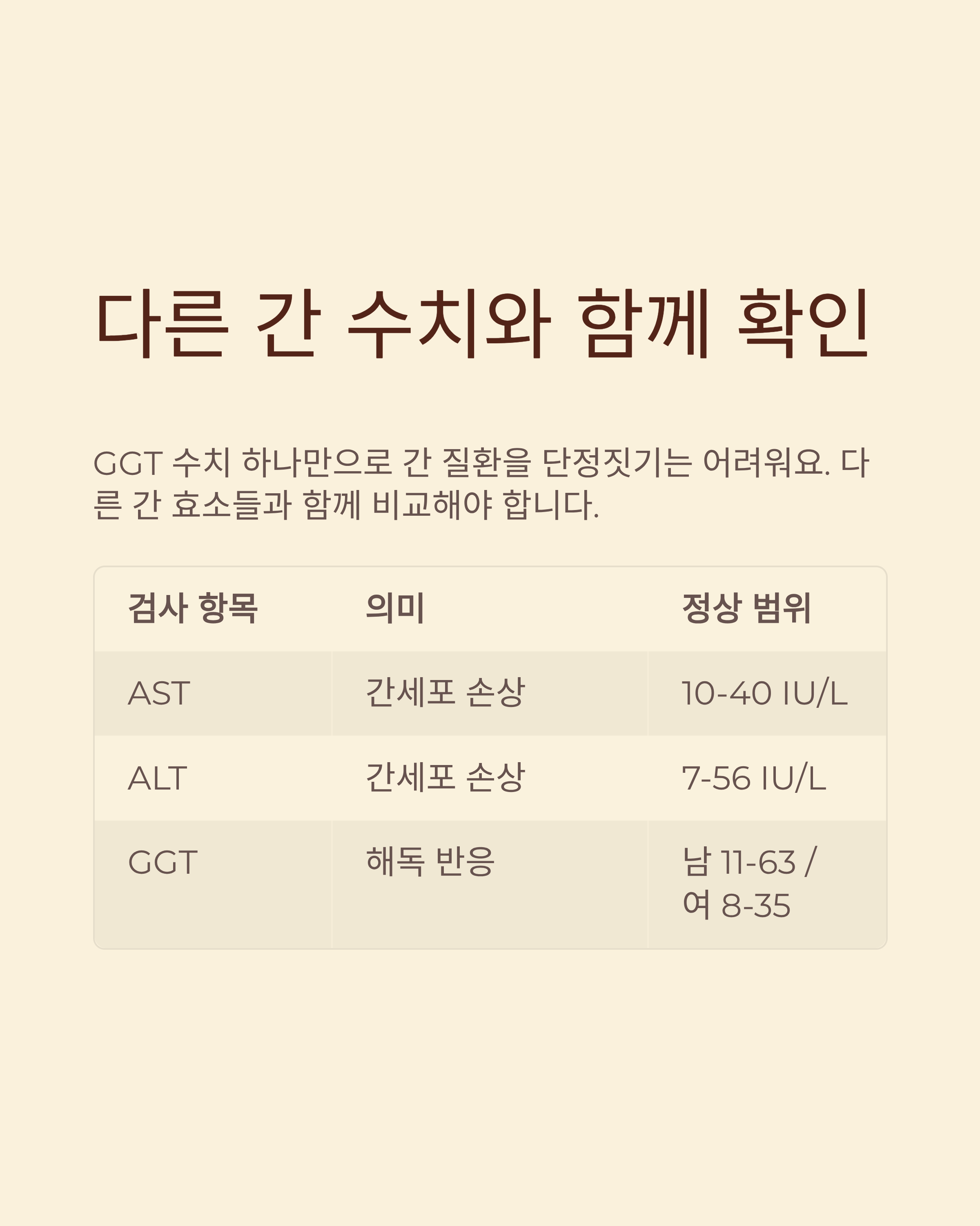 | 감마지티피(GGT) 역할 | 간의 해독 반응 지표 |