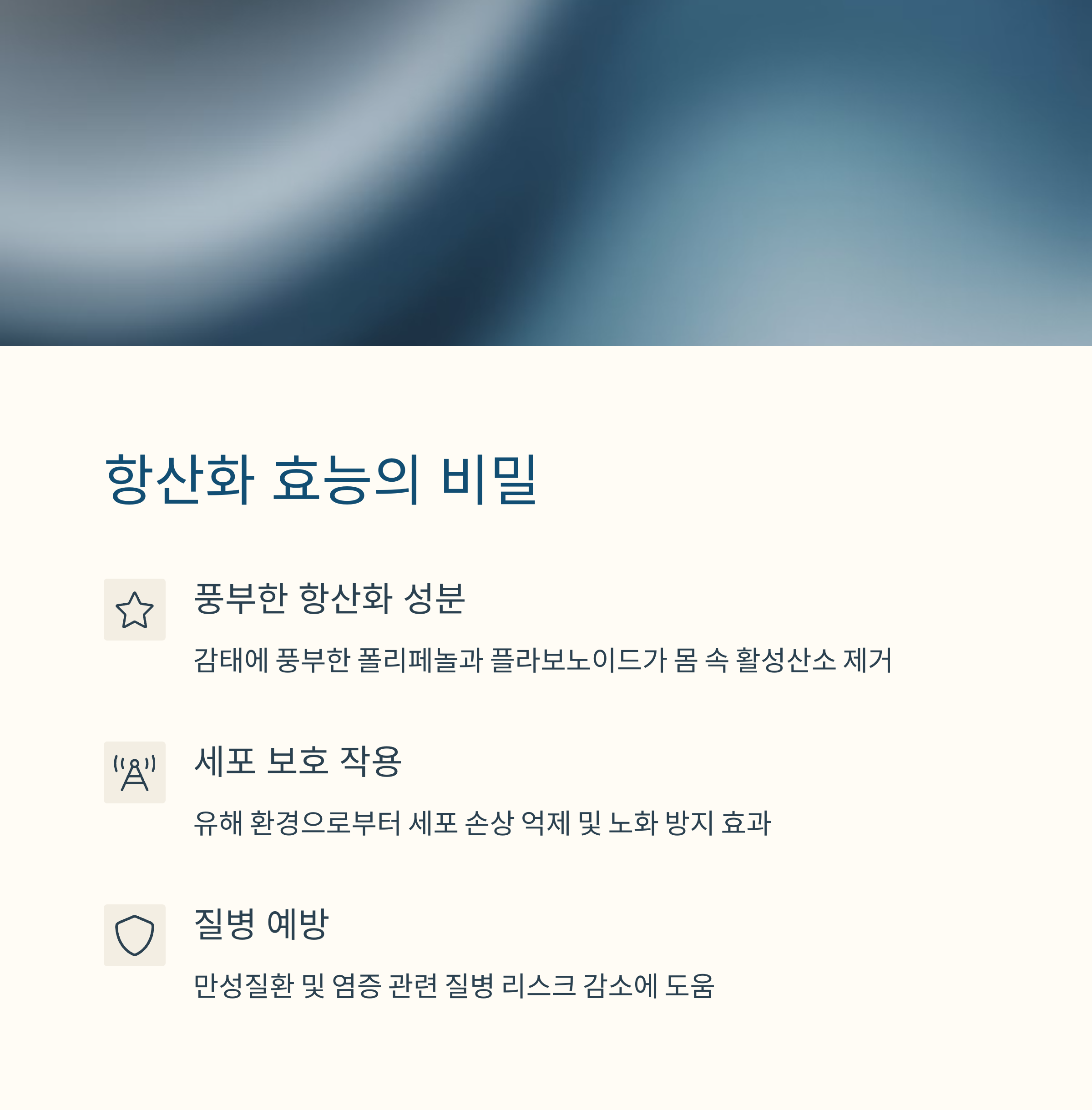 세포 노화를 늦추고 만성 염증을 줄이는 데 도움을 줍니다.