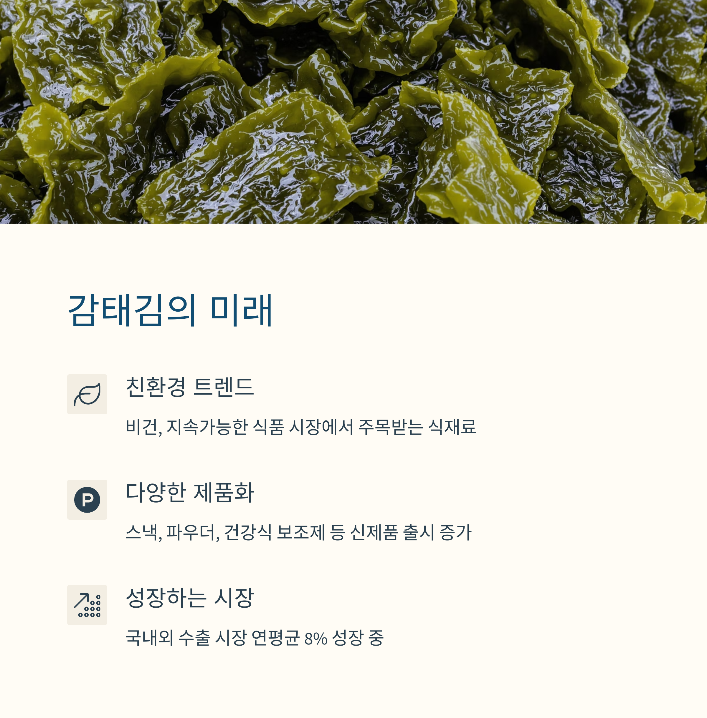 "감태김은 단순한 김이 아닙니다, 미래형 건강식입니다" 🌱