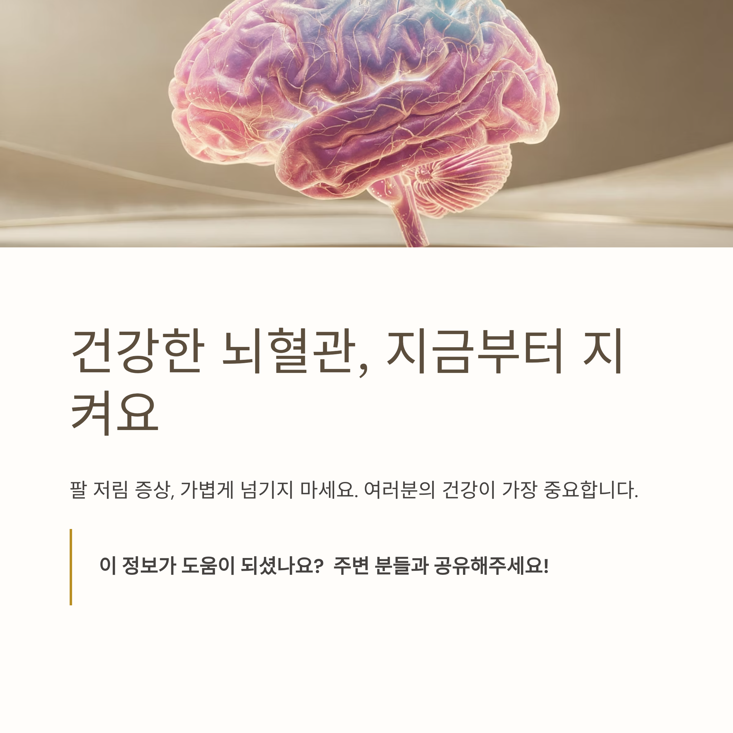 가벼운 팔 저림도 반복되거나 이상한 느낌이 든다면, 반드시 전문가와 상담해야 합니다. 뇌에서 보내는 경고일 수 있다는 사실을 기억하세요. 빠른 대처가 후유증을 줄이는 가장 확실한 방법입니다.