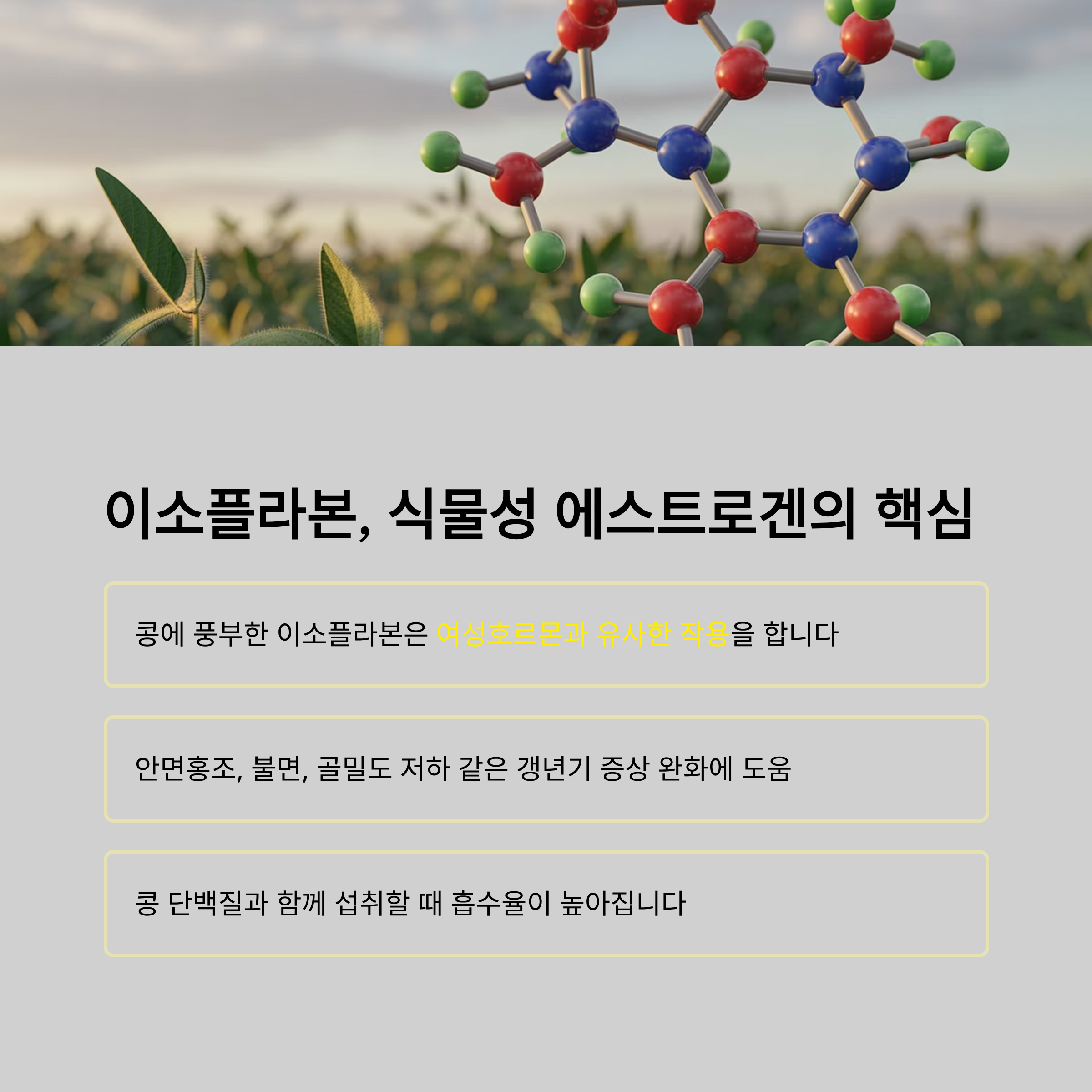 불면, 골밀도 저하를 완화해주는 역할을 합니다. 특히 콩 단백질과