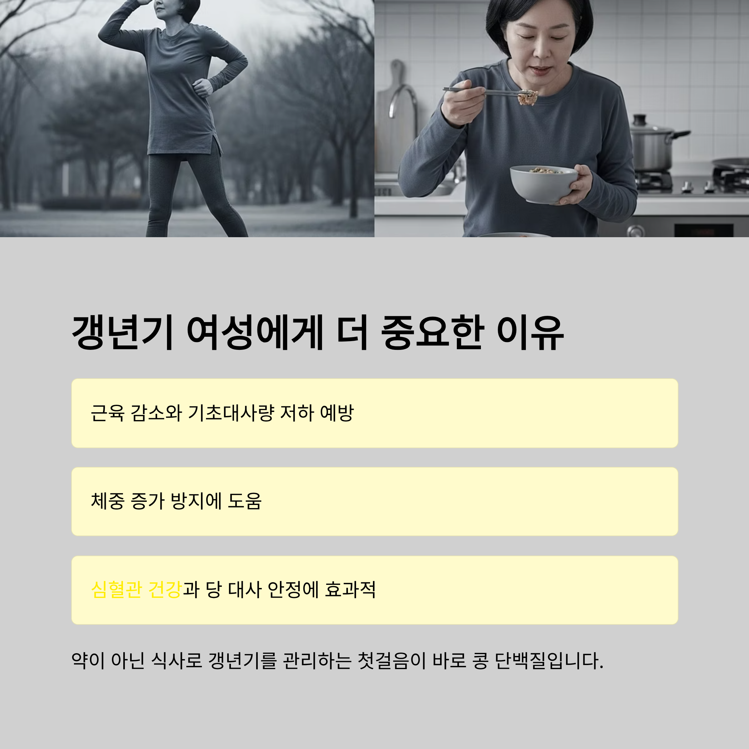 도움이 됩니다. 근육량 유지 또한 갱년기 건강의 핵심이므로