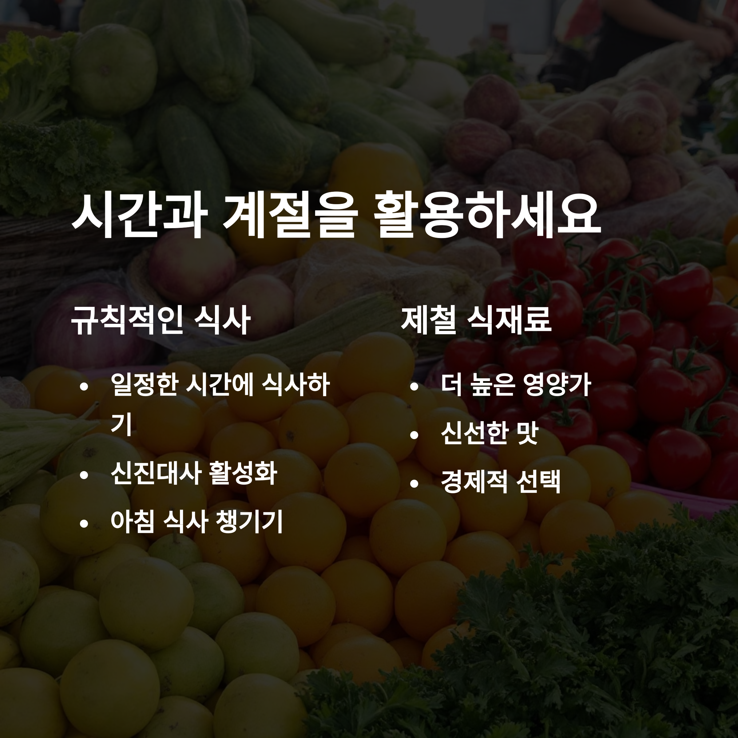 | 규칙적인 식사 시간 | 저지방 단백질 | 과도한 설탕 섭취 |