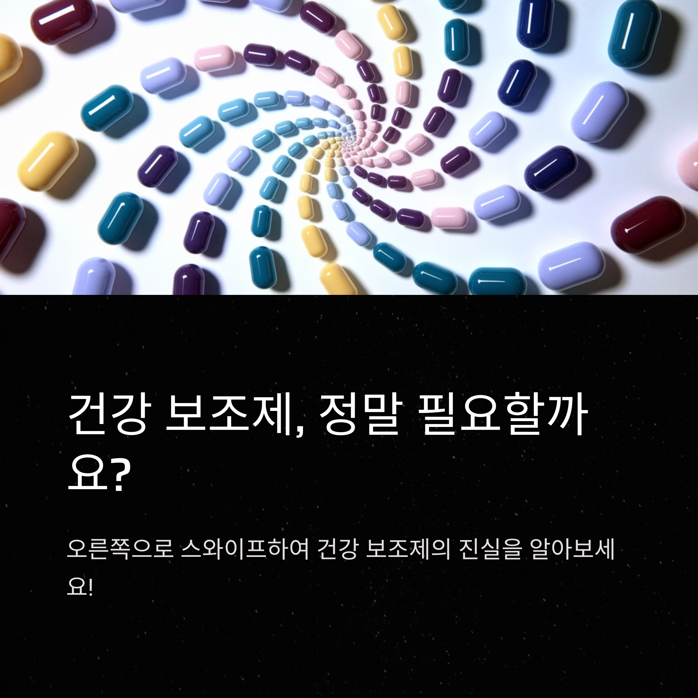 건강 보조제는 우리 몸에 부족한 영양소를 보충하는 유용한 도구일 수 있지만, 무조건적인 섭취가 답은 아닙니다. 균형 잡힌 식단이 최우선이며, 필요할 때만 신중하게 선택하는 것이 중요하죠.