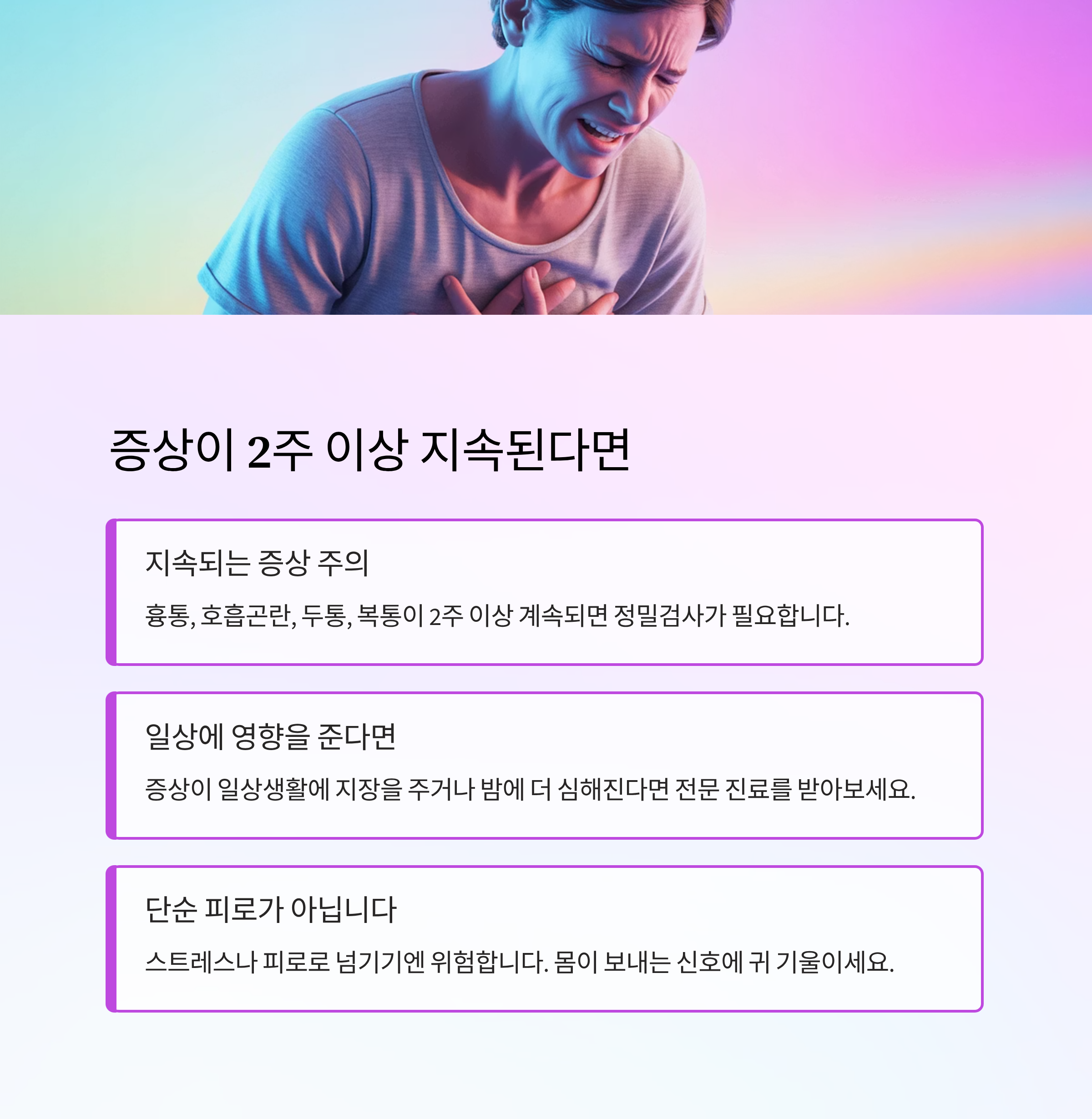 2주 이상 증상이 지속된다면 무조건 주의해야 합니다.