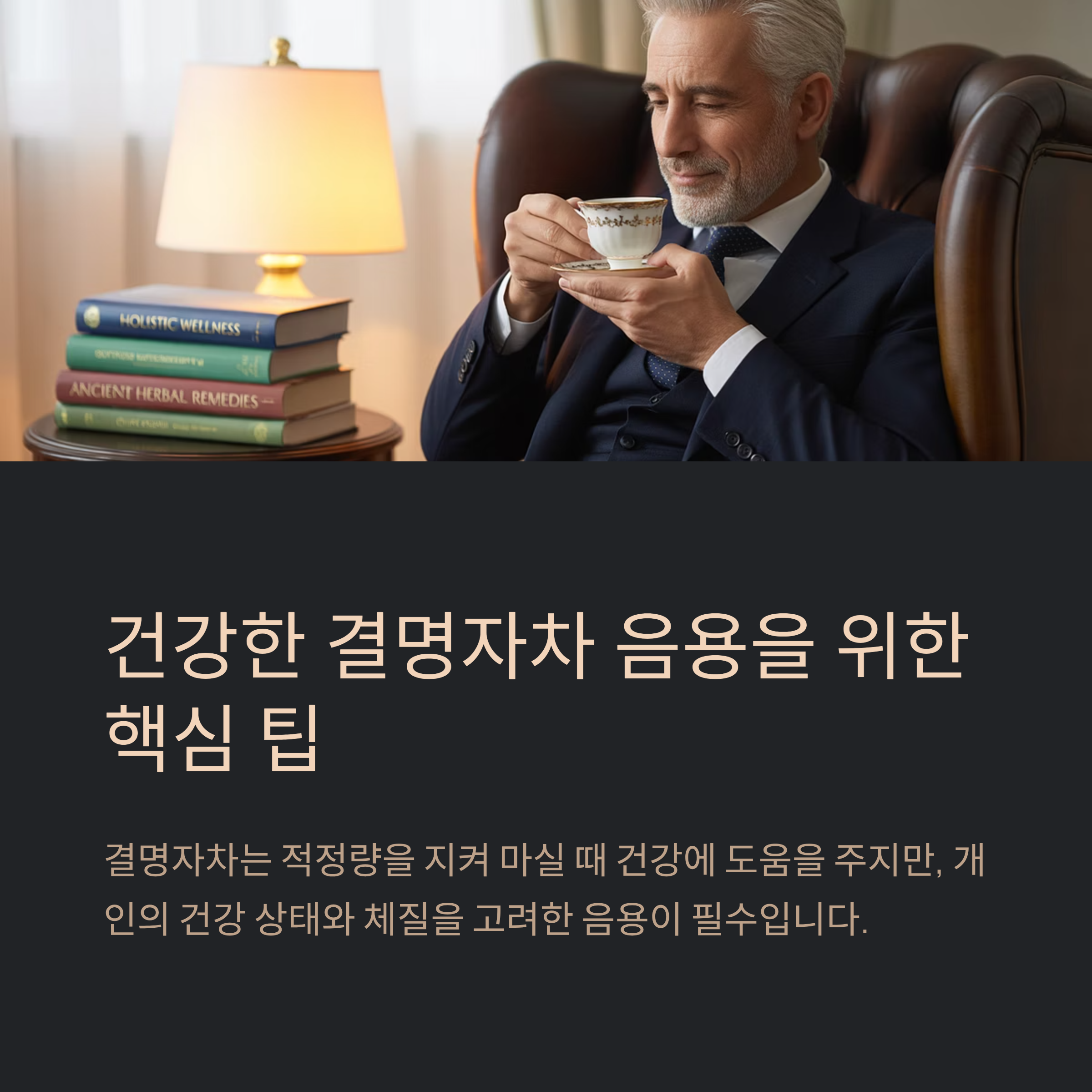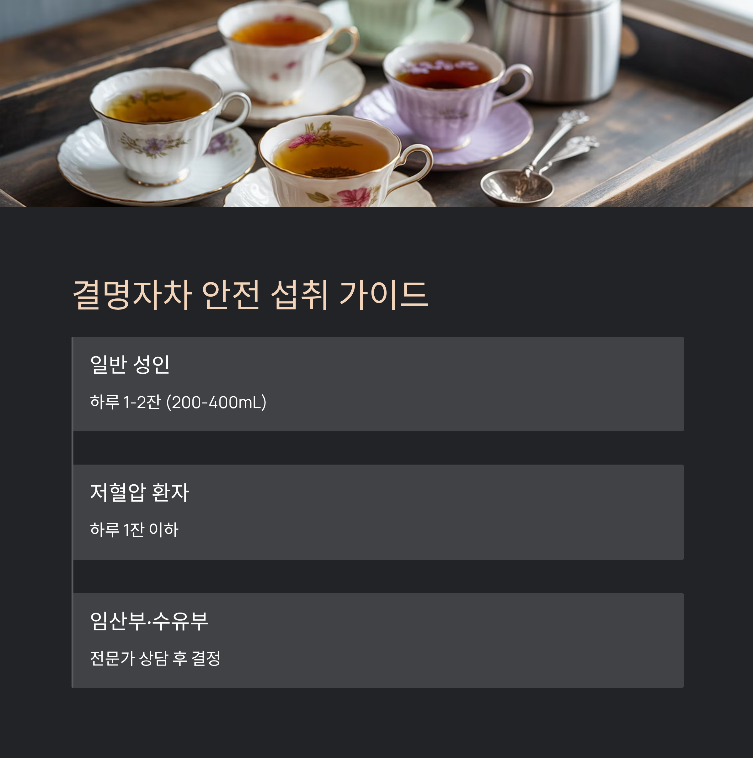 결명자차는 강한 이뇨작용이 있어 하루 권장량(1~2잔)을 넘길 경우 탈수나 전해질 불균형을 초래할 수 있습니다.