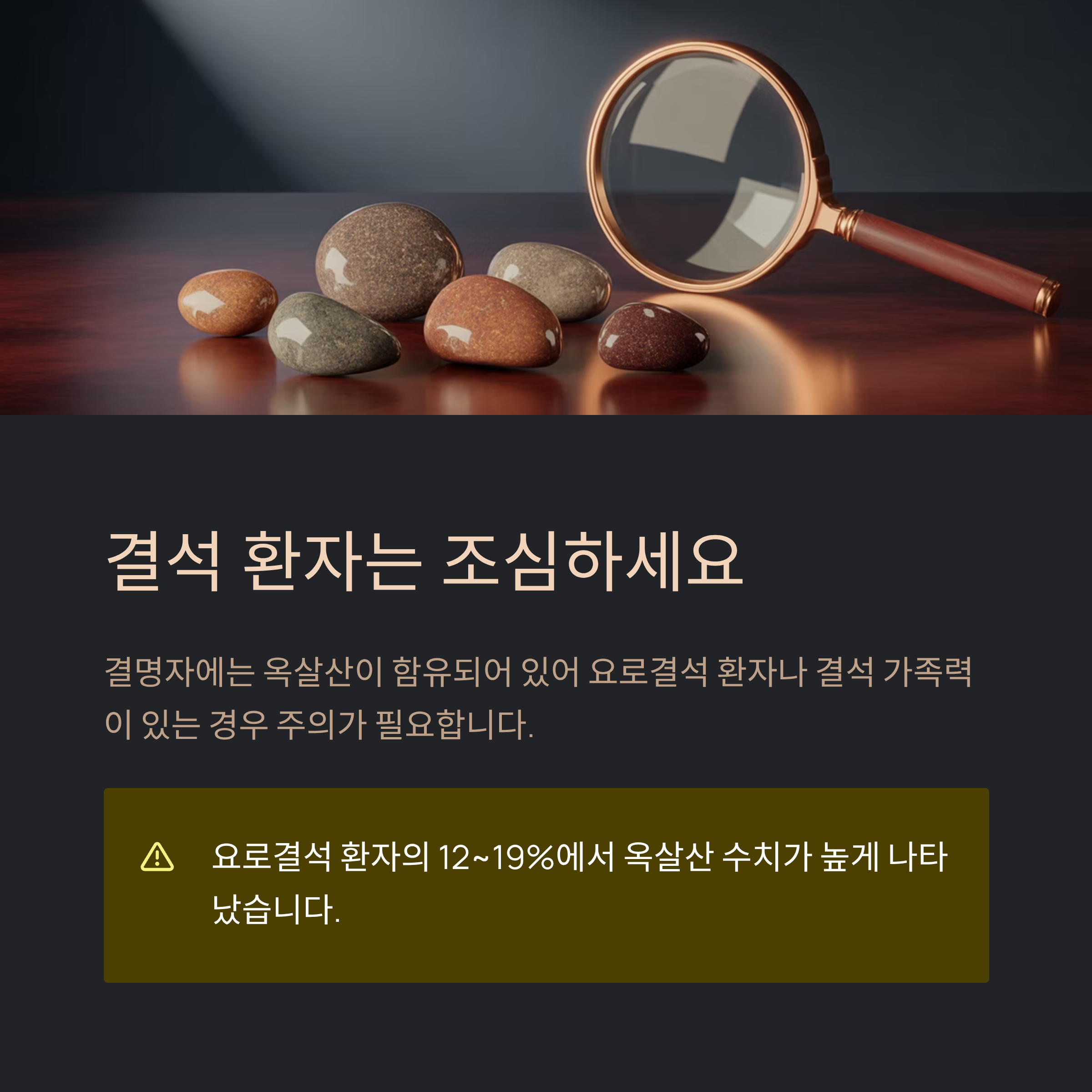 옥살산은 칼슘과 결합해 결석을 형성할 수 있습니다.