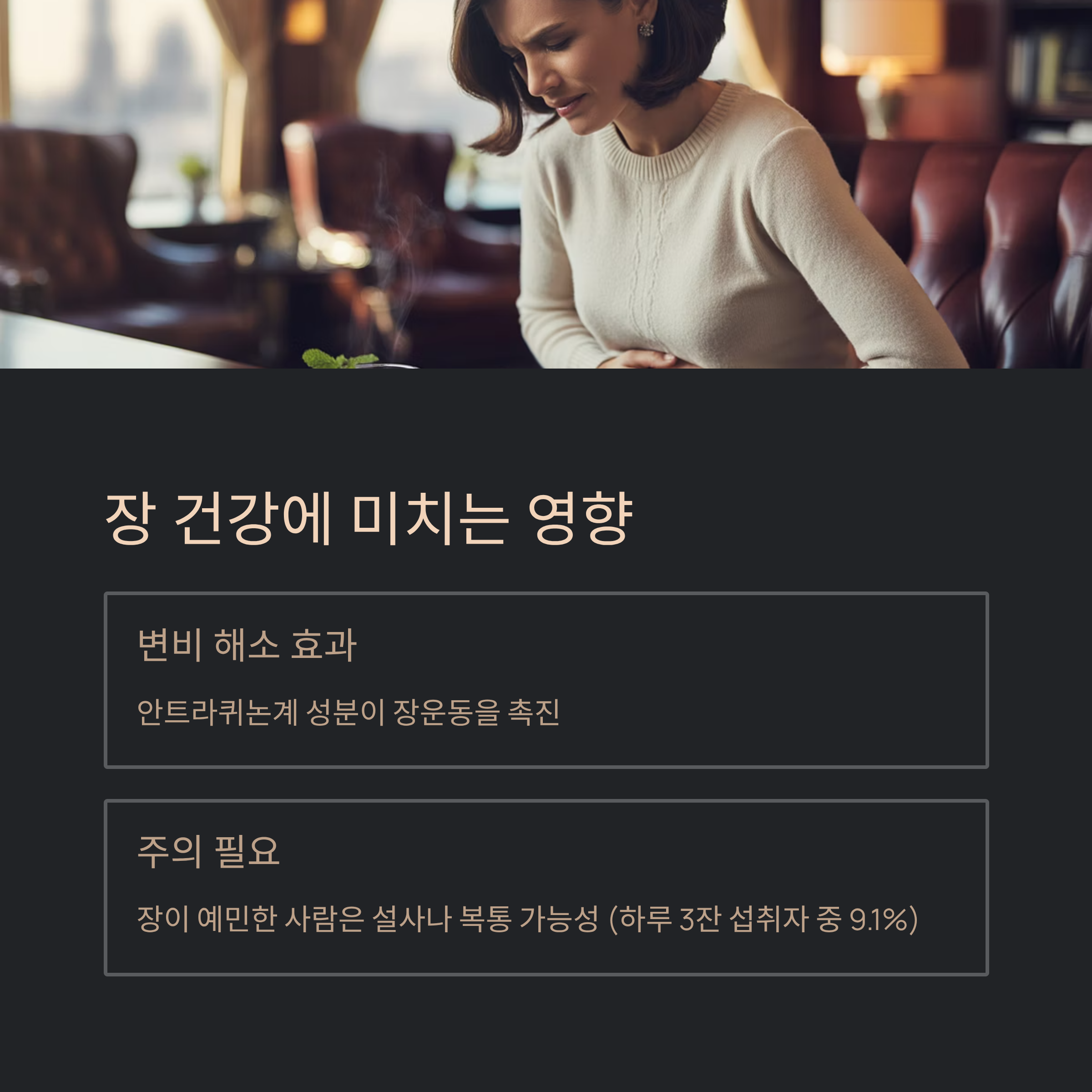 2025년 5월 자료에 따르면 하루 3잔 섭취자 중 9.1%가 불편감을 호소했습니다.