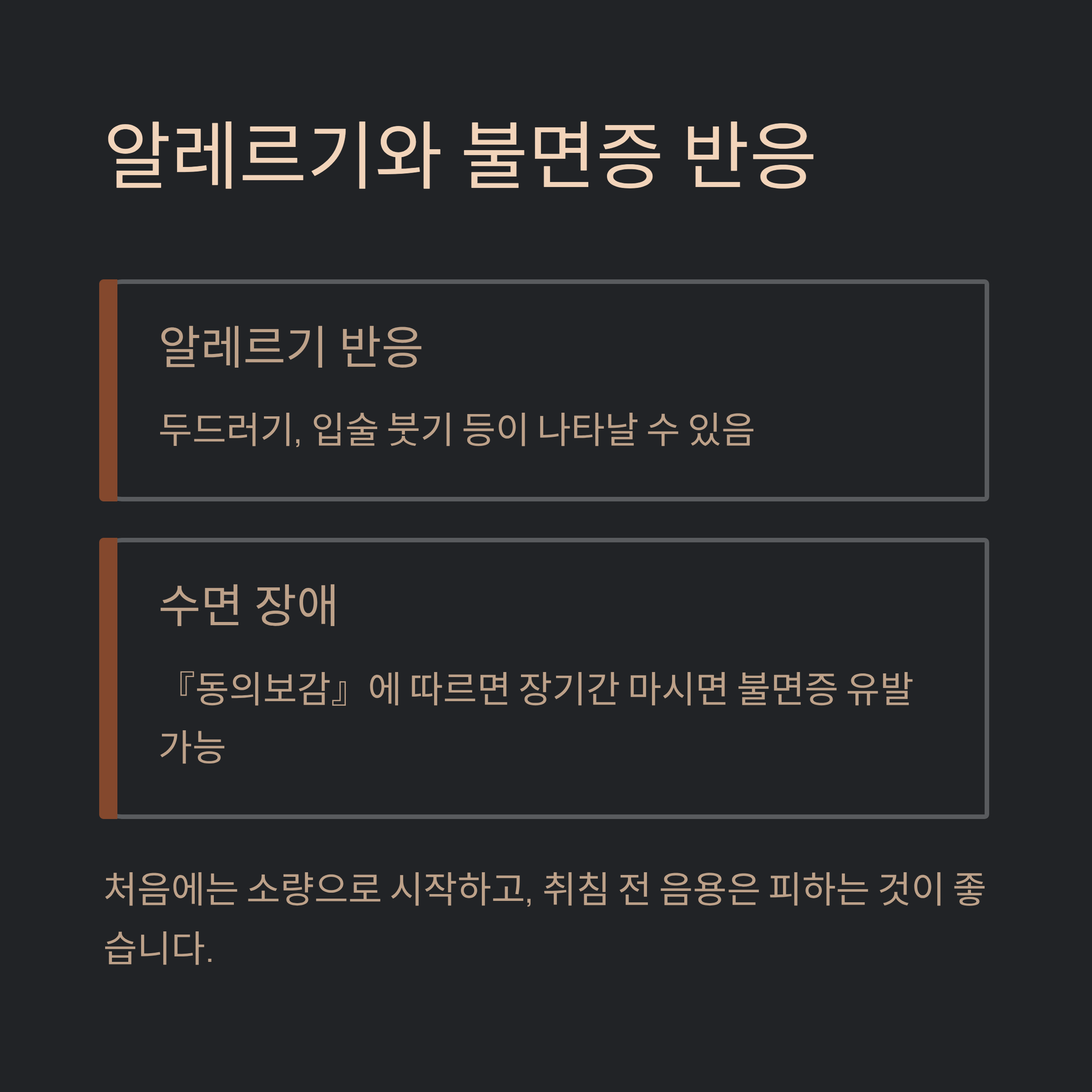 특히 개인의 건강 상태와 체질을 고려한 음용이 필수입니다.