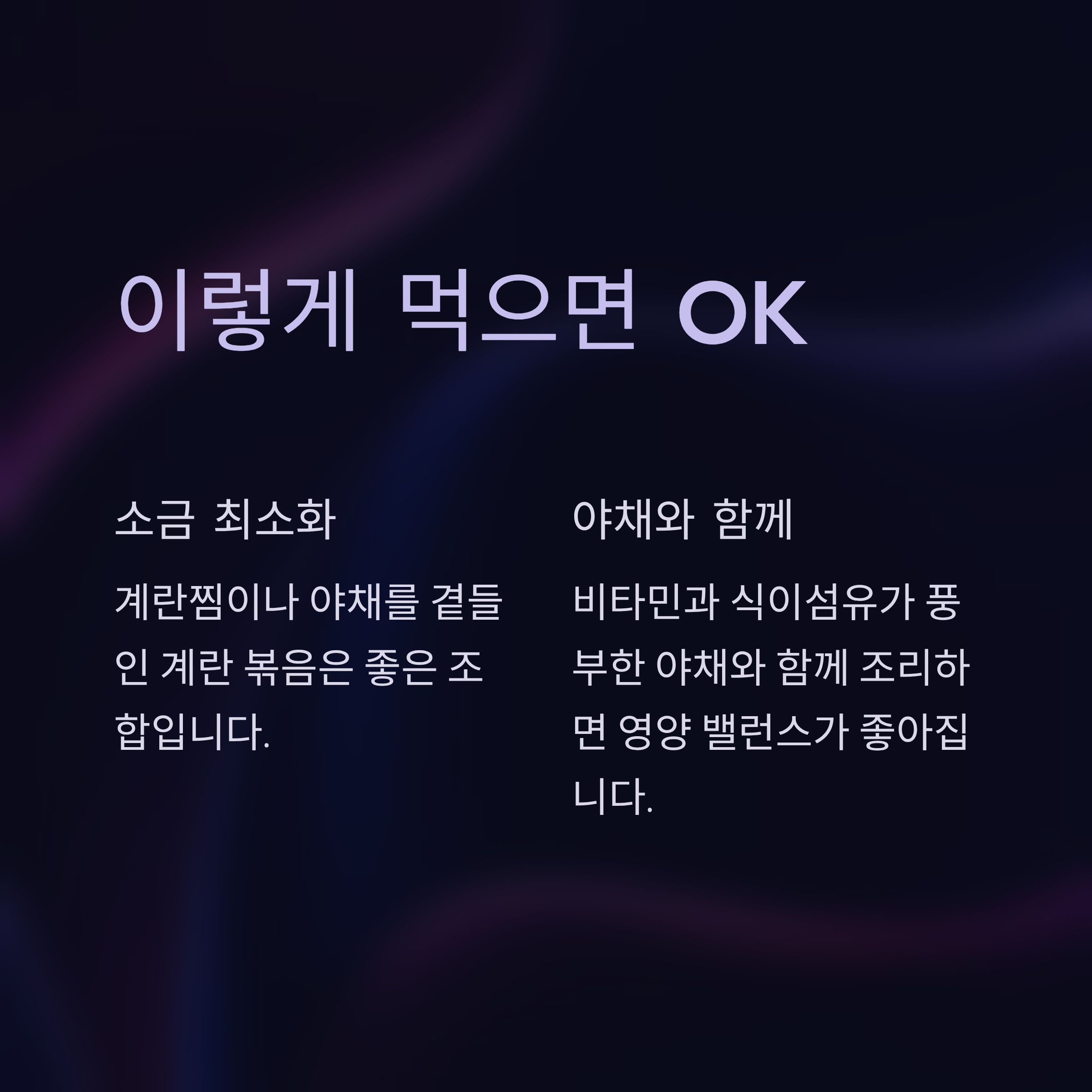 특히 계란 프라이나 계란찜에 간을 세게 하면 소금 중복 섭취가 될 수 있어요.