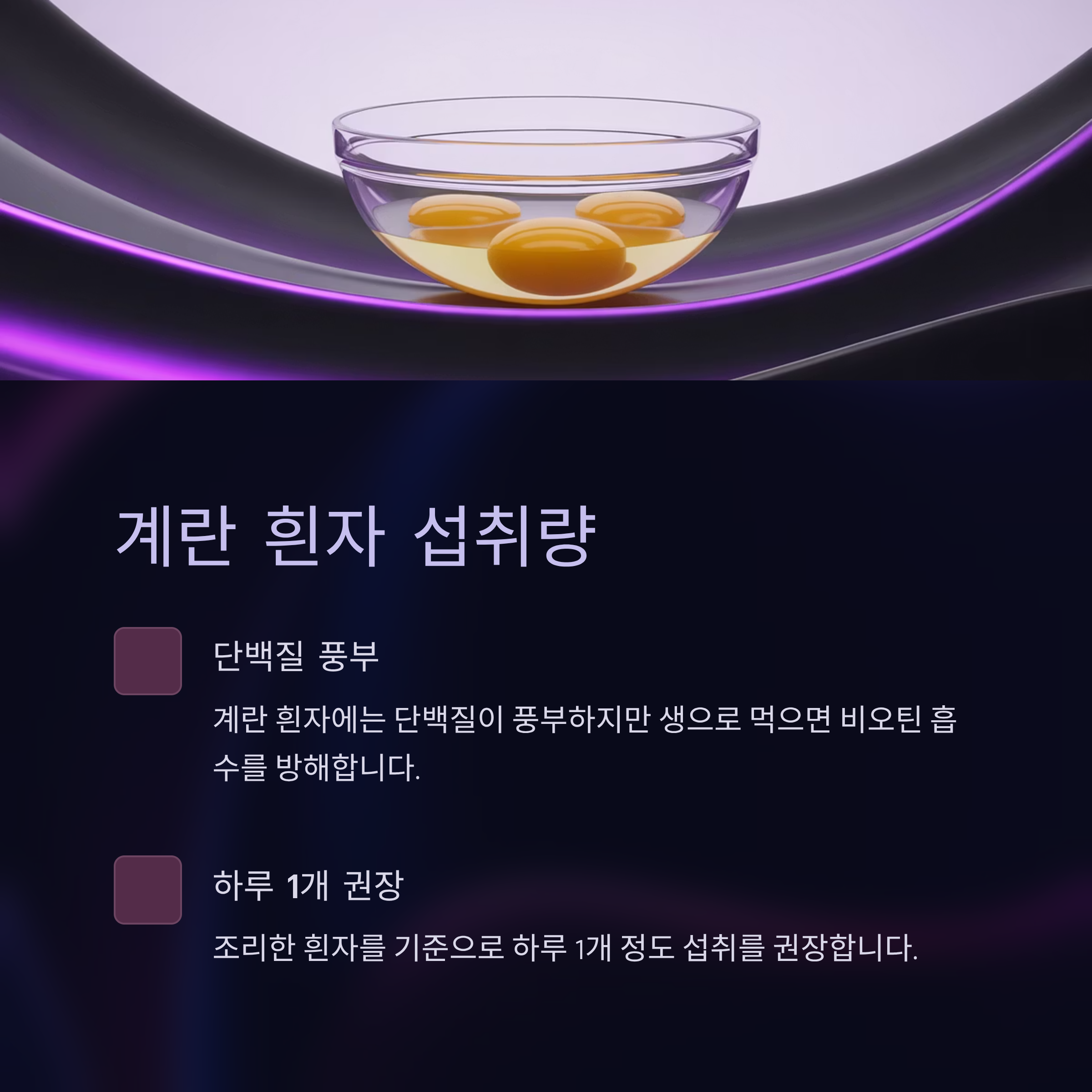 조리한 흰자를 기준으로 하루 1개 정도 섭취를 권장하며