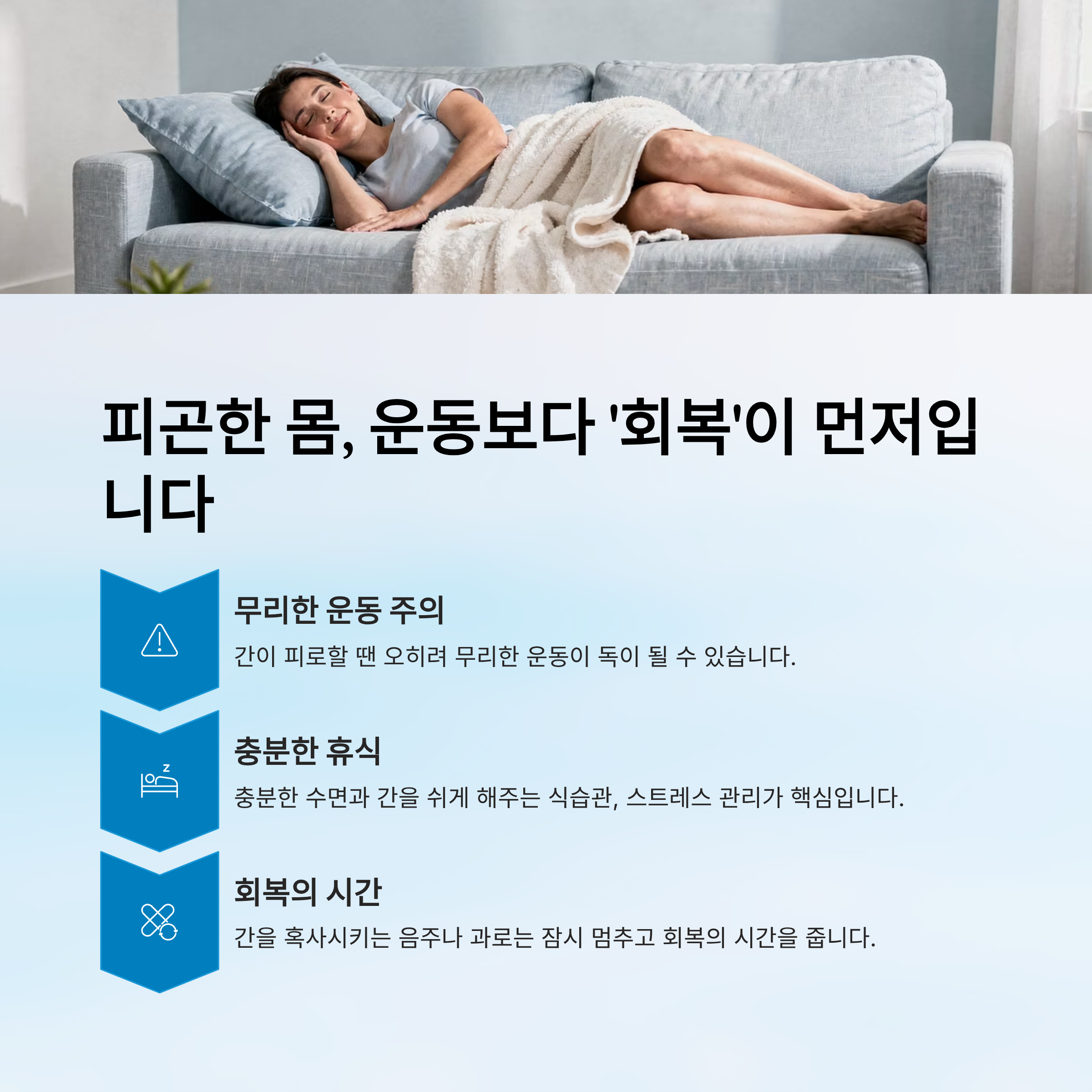 간이 피로할 땐 오히려 무리한 운동이 독이 될 수 있습니다.