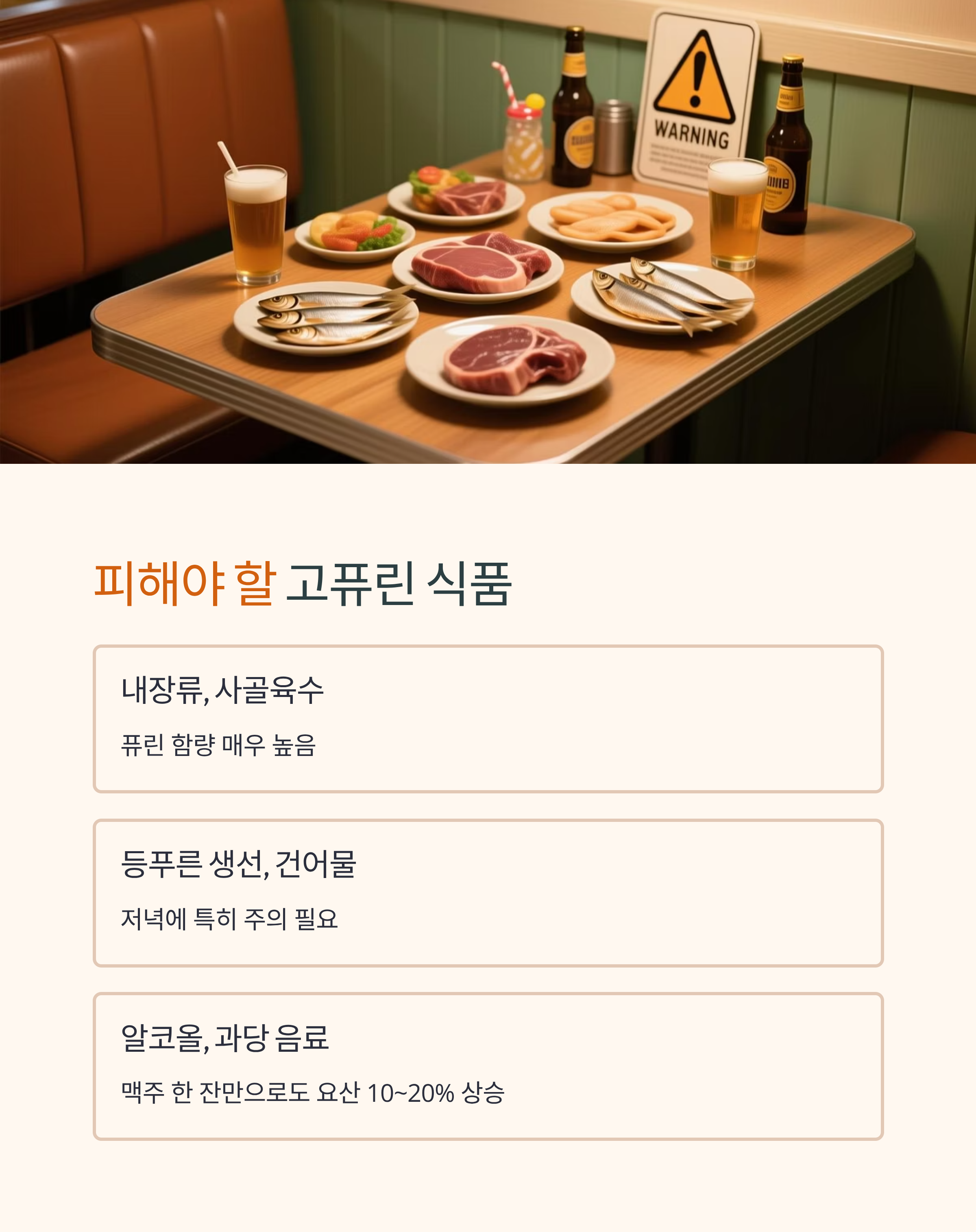 피해야 할 고퓨린 저녁 식사 대표 음식