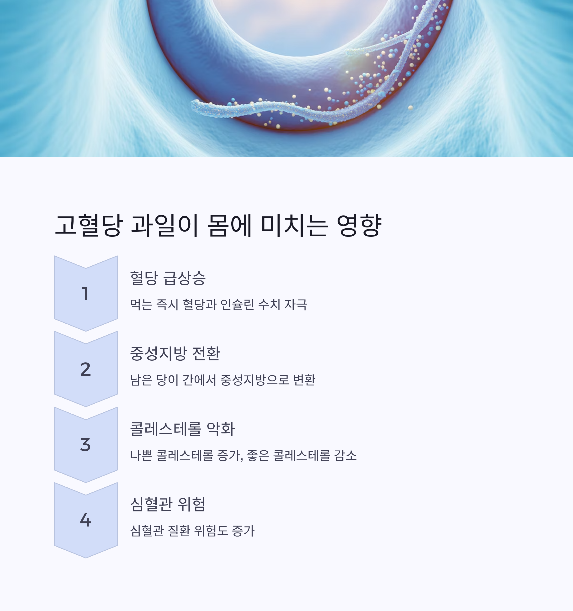 이는 나쁜 콜레스테롤(LDL)을 높이고, 좋은 콜레스테롤(HDL)은 오히려 낮출 수 있어 결과적으로 심혈관 질환 위험을 키웁니다.