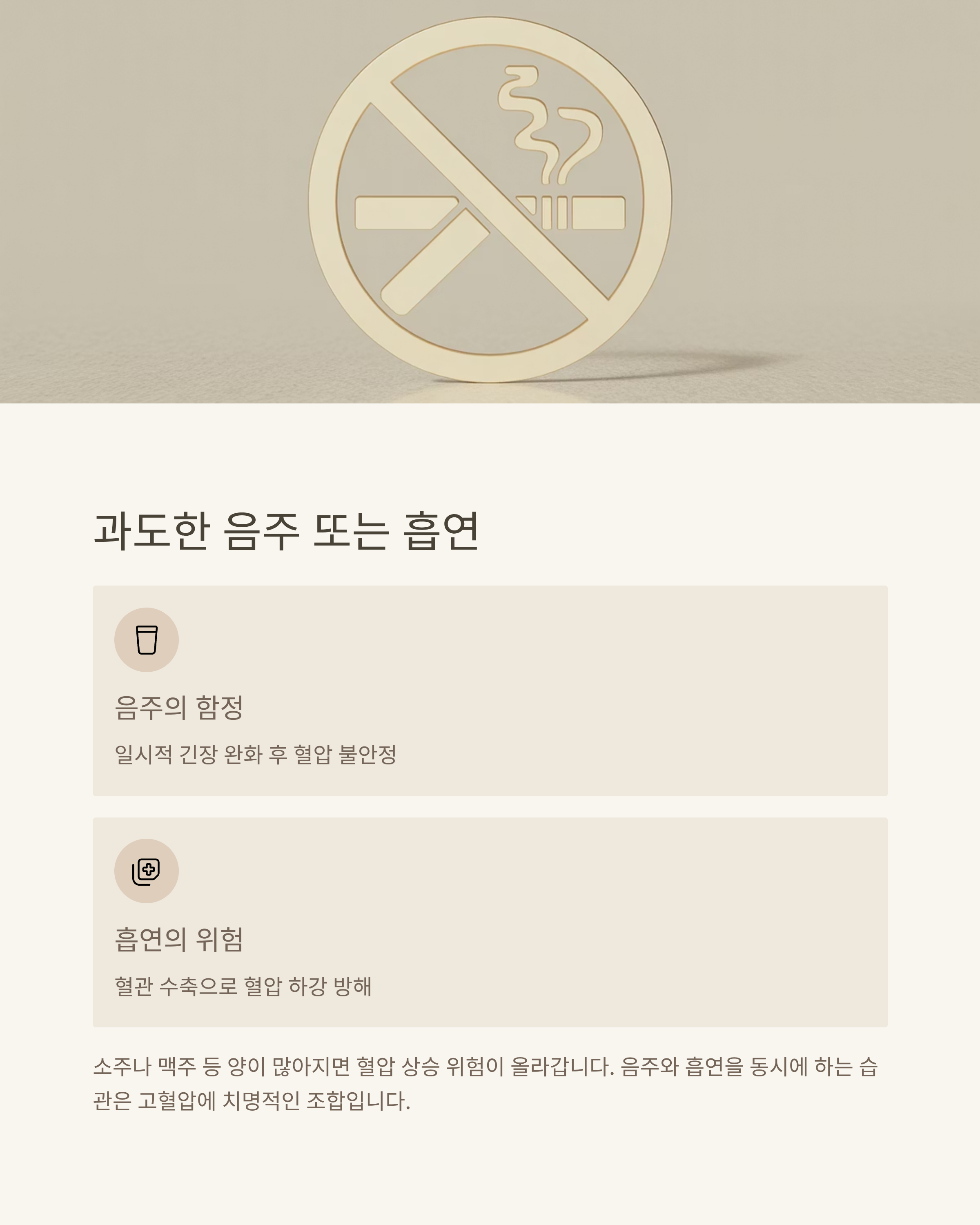 술은 일시적으로 긴장을 풀어주는 듯 보이지만, 결국 혈압을 불안정하게 만듭니다.