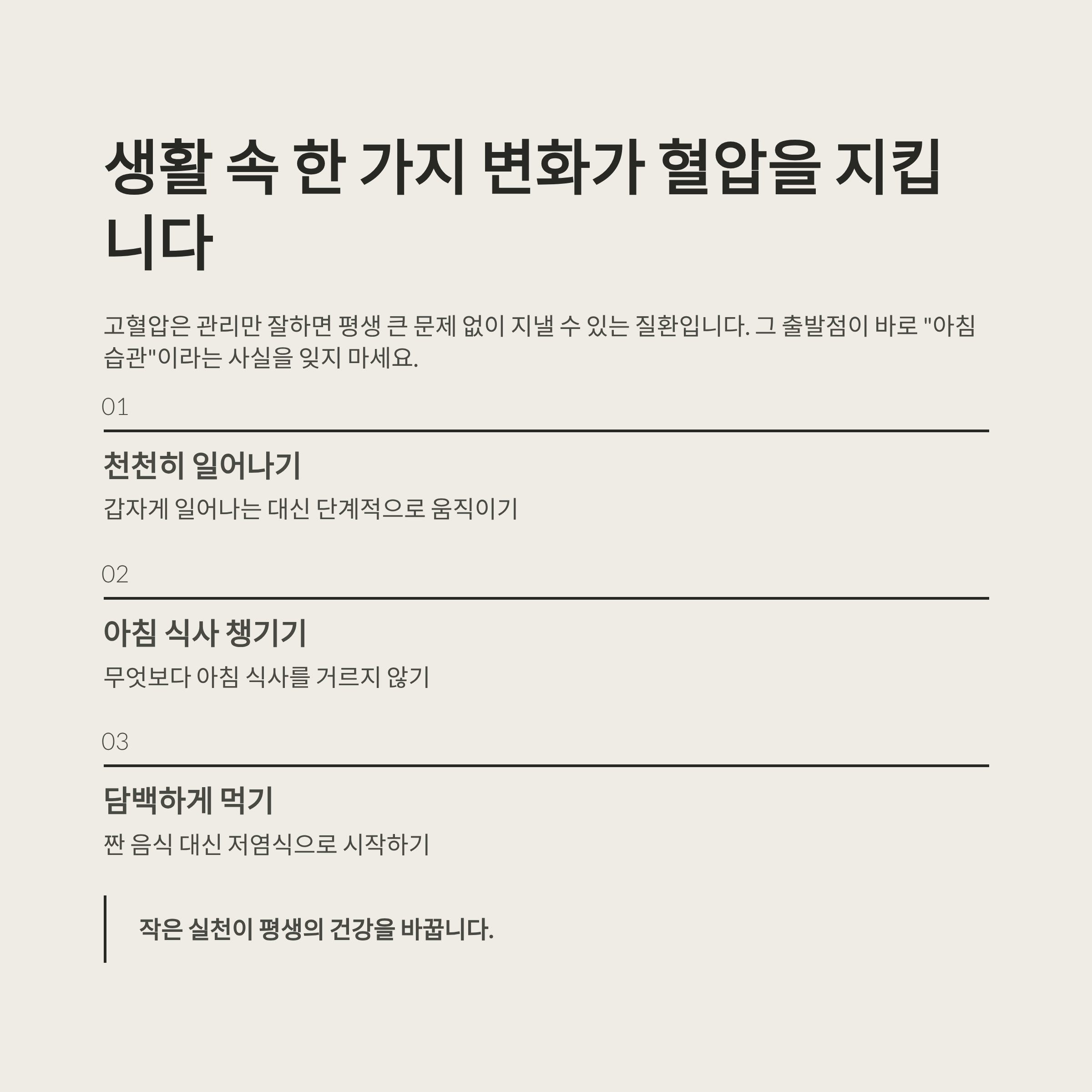 생활 속 한 가지 변화가 혈압을 지킵니다