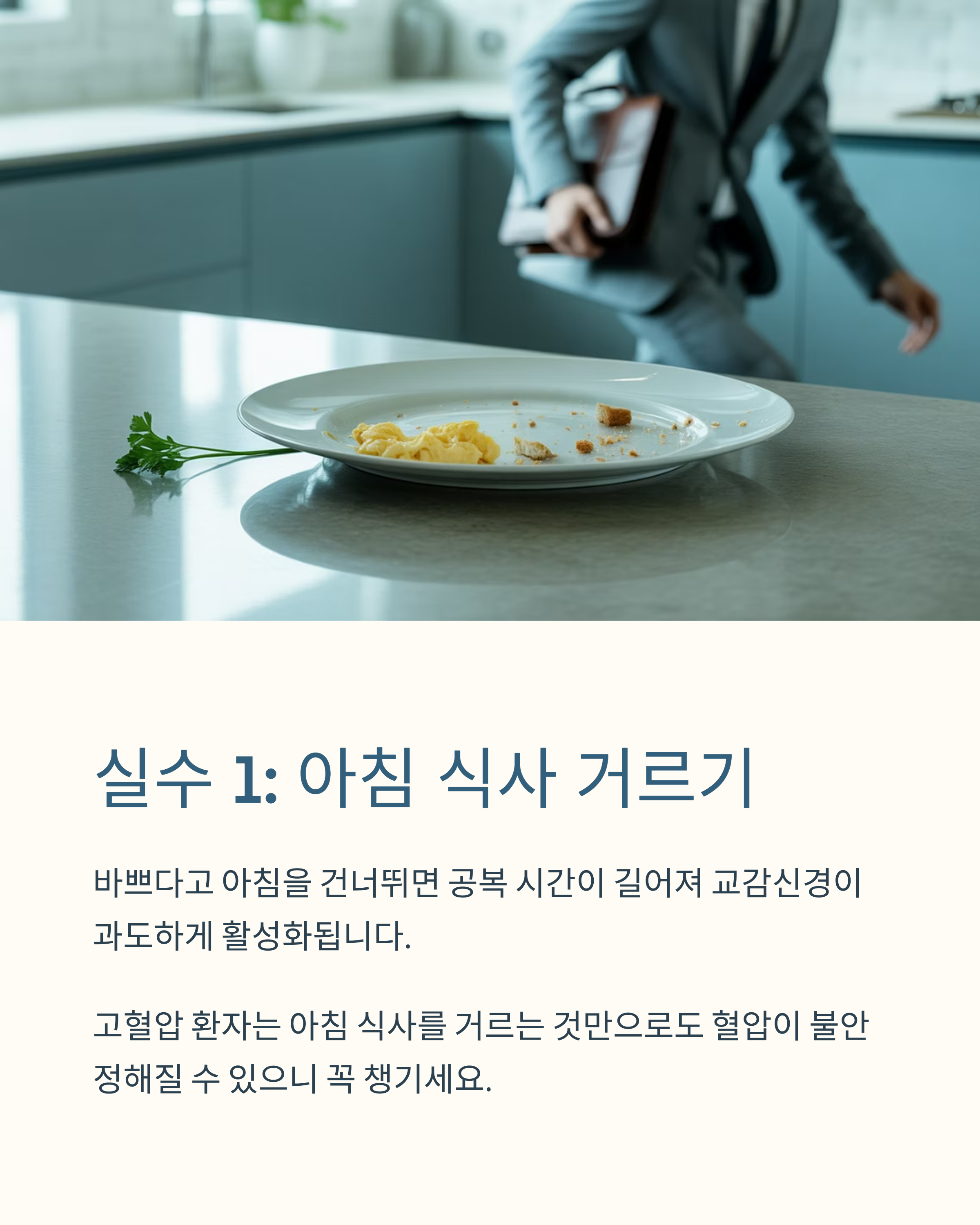 특히 고혈압 환자라면 아침 식사를 거르는 것만으로도 혈압이 들쑥날쑥해질 수 있으니 꼭 챙기셔야 해요.