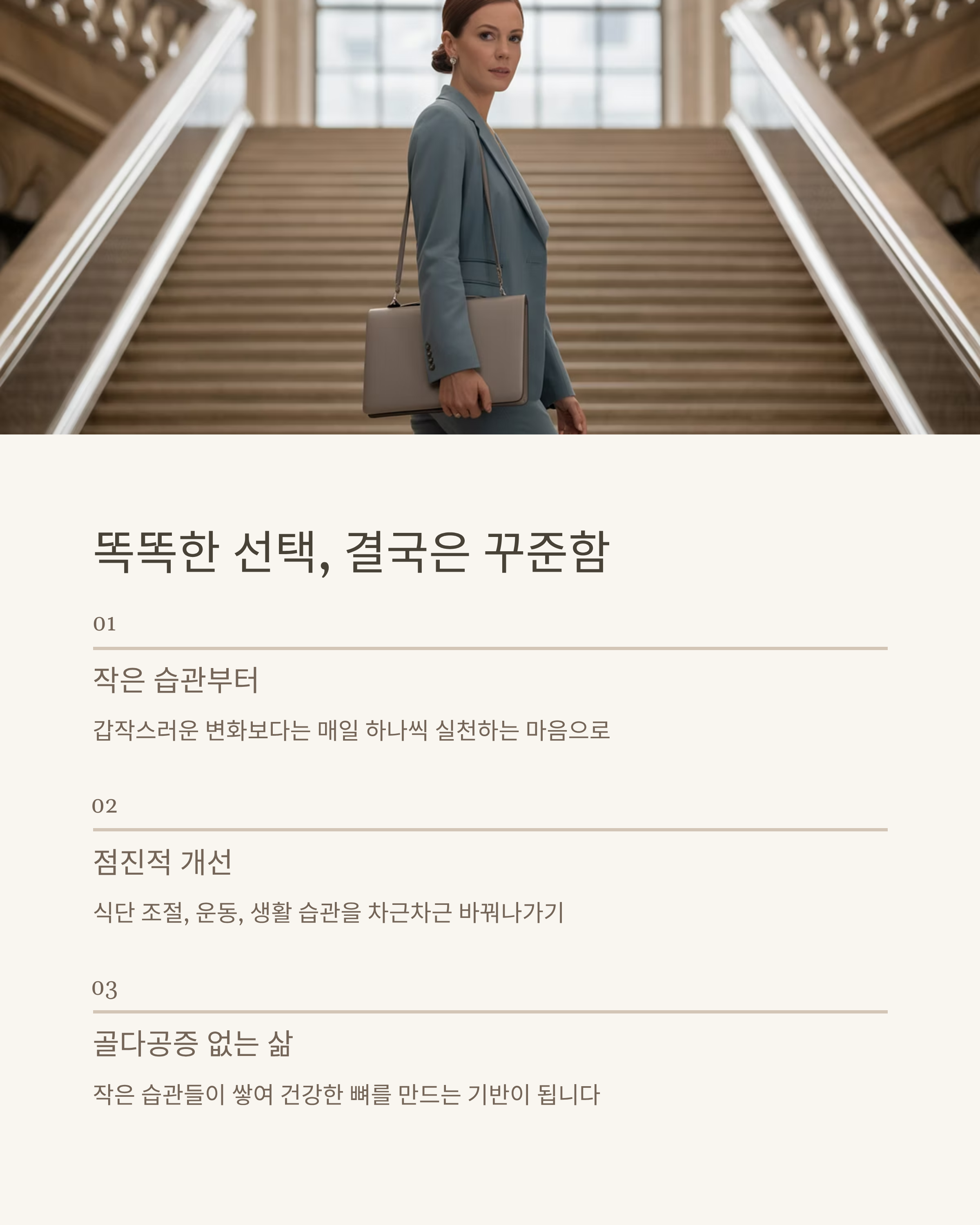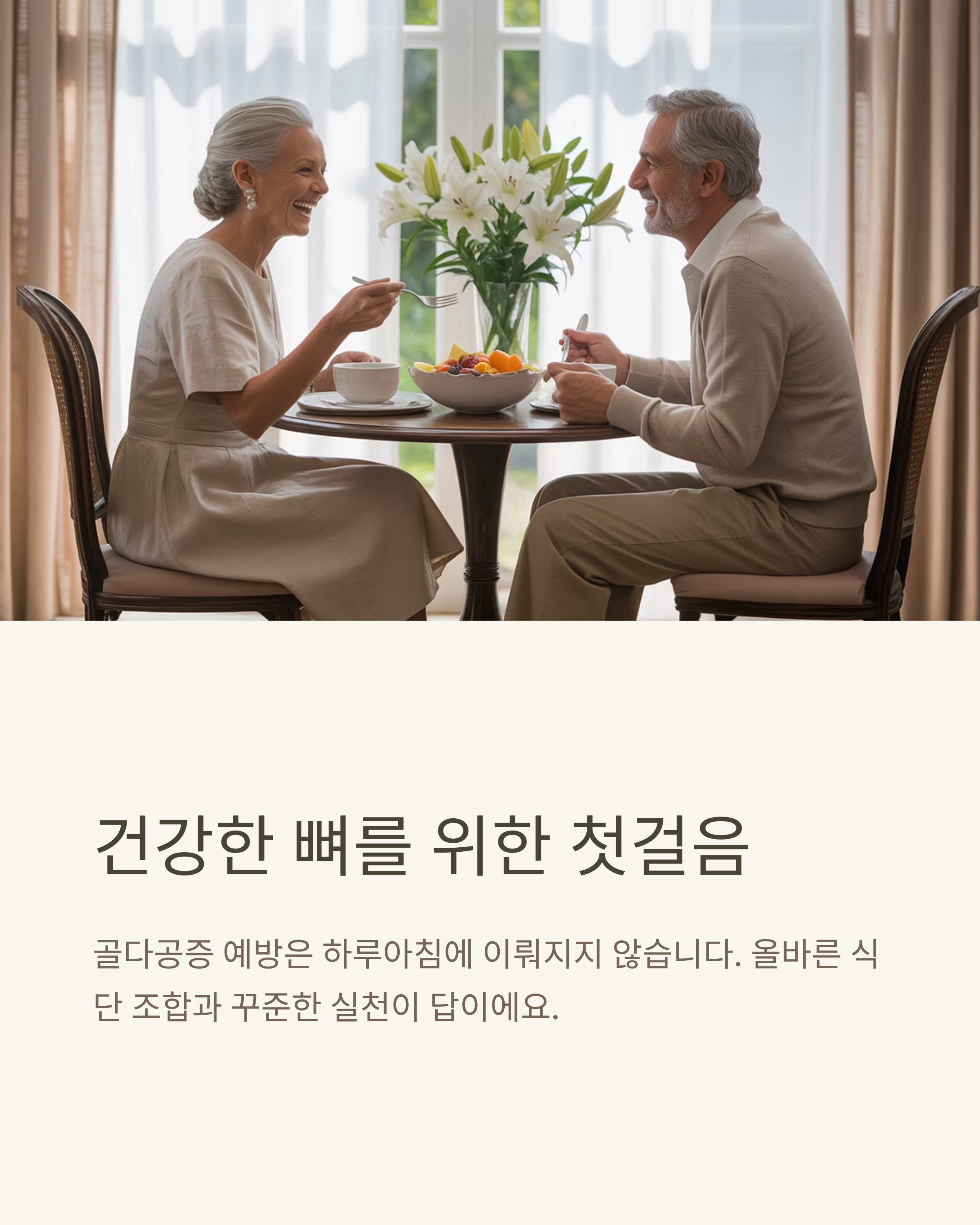 작은 습관 하나하나가 쌓이면 골다공증 없는 삶을 만드는 기반이 됩니다.