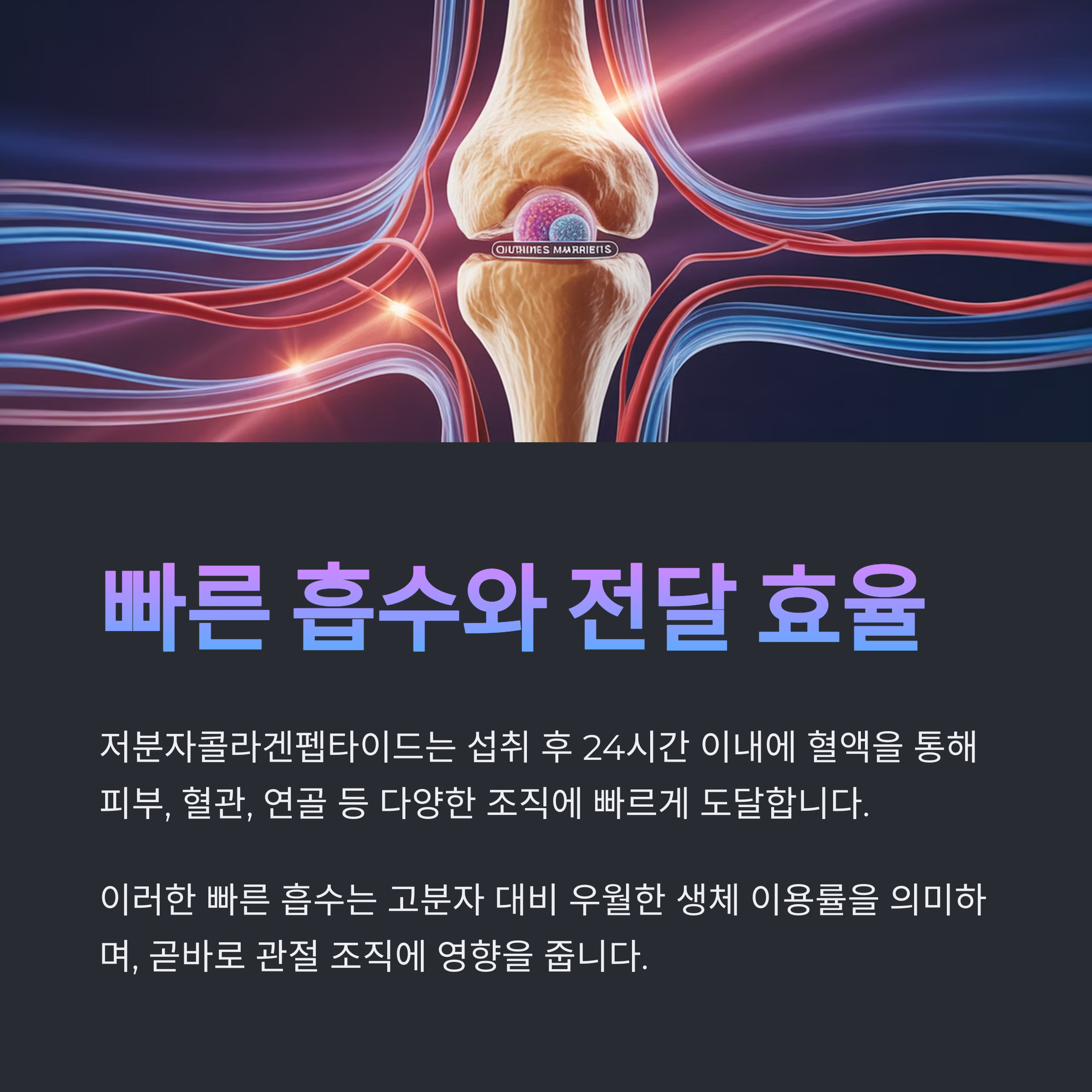혈액을 통해 피부, 혈관, 연골 등 다양한 조직에 빠르게 도달합니다.