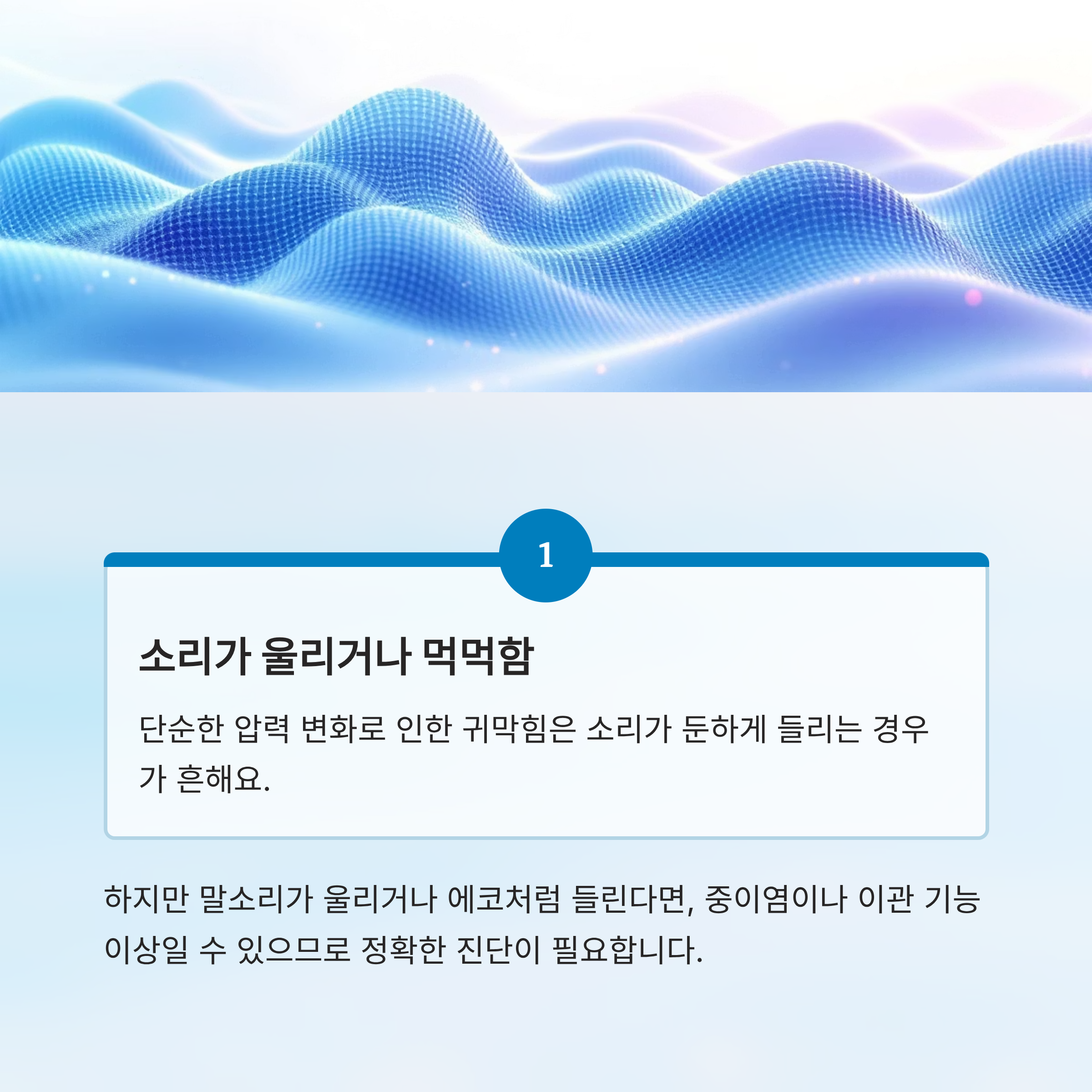 | 증상 발생 시기 | 비행기, 엘리베이터 등 후 | 감기, 귀 통증 동반 시 |