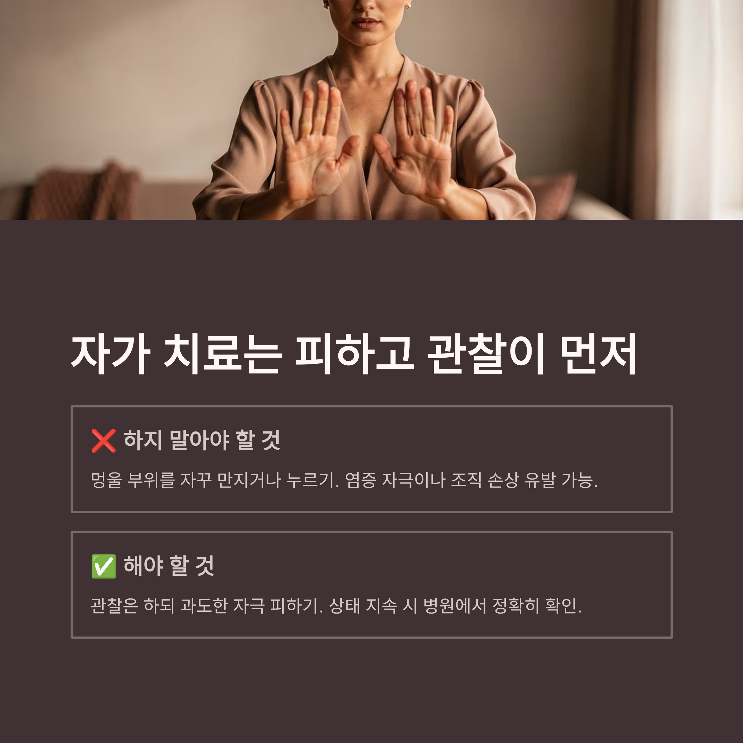 많은 분들이 멍울 부위를 자꾸 만지거나 눌러보게 되죠.
