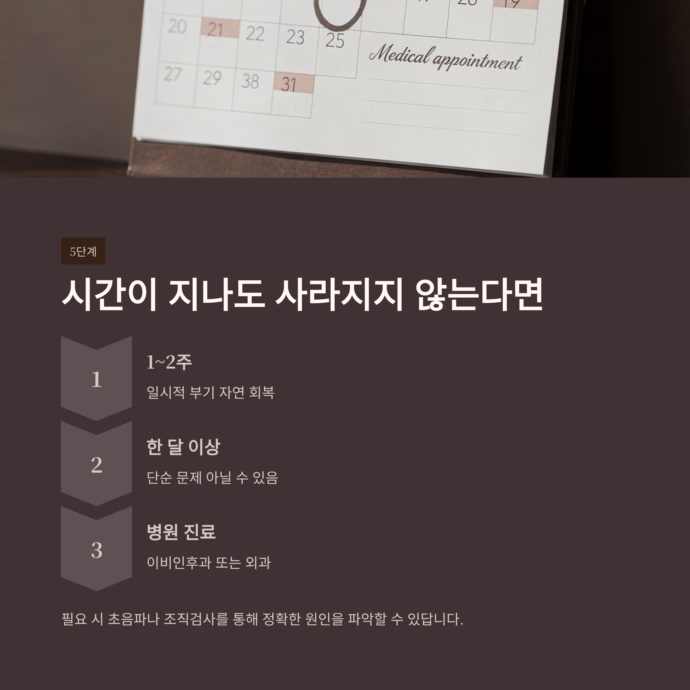 한 달 이상 지속되거나 점점 커진다면 단순한 문제가 아닐 수 있습니다.