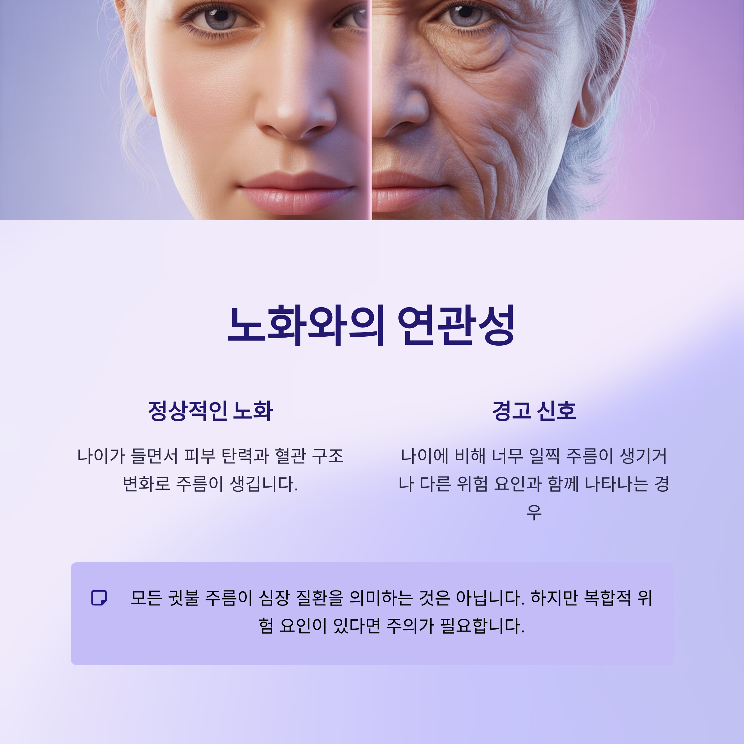 물론 모든 귓불 주름이 심장 질환을 의미하는 것은 아닙니다. 나이가 들면서 피부 탄력과 혈관 구조 변화로 인해 주름이 생기는 경우도 많기 때문이죠. 하지만 문제는, 나이에 비해 너무 일찍 주름이 생기거나, 다른 위험 요인들과 함께 나타나는 경우입니다. 이럴 때는 몸이 보내는 경고 신호일 수 있다는 점을 기억해두어야 합니다.