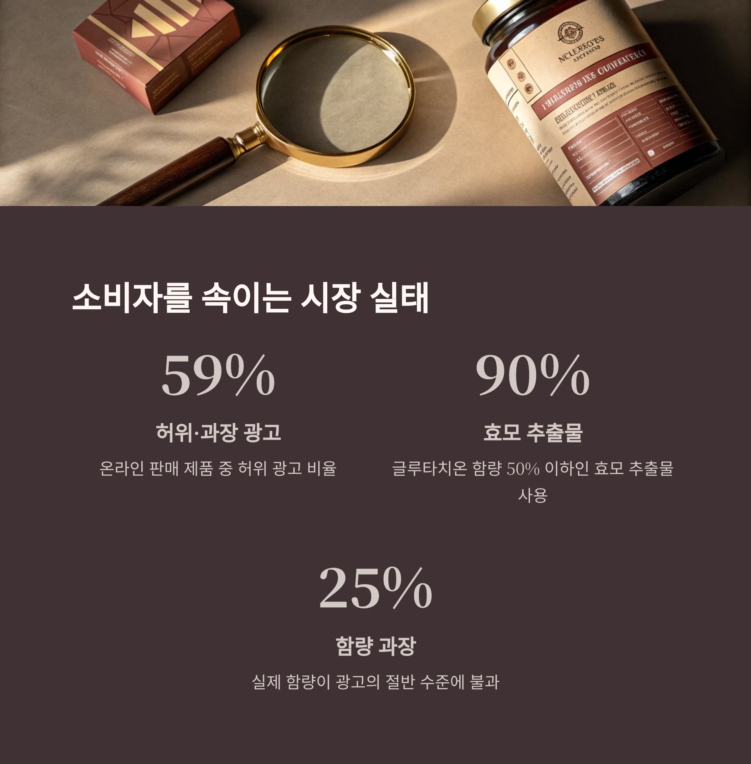 더욱 심각한 것은 25%의 제품이 실제 글루타치온 함량이 광고의 절반 수준에 불과했다는 점입니다.