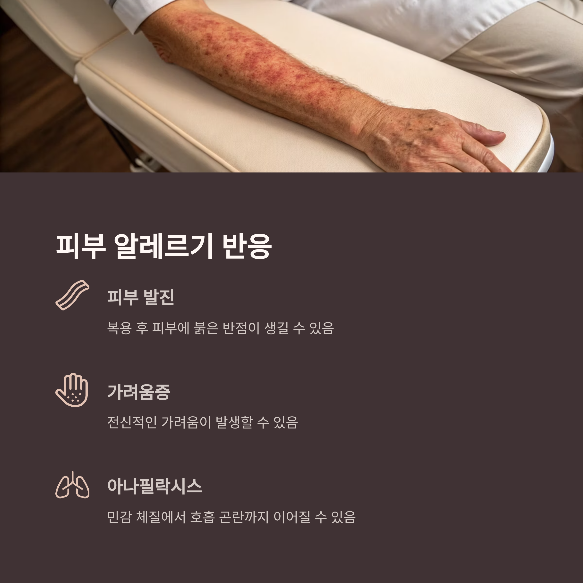 이러한 알레르기 반응은 초기 소량 복용에서도 발생할 수 있어 복용 전 체질 확인이 중요합니다.