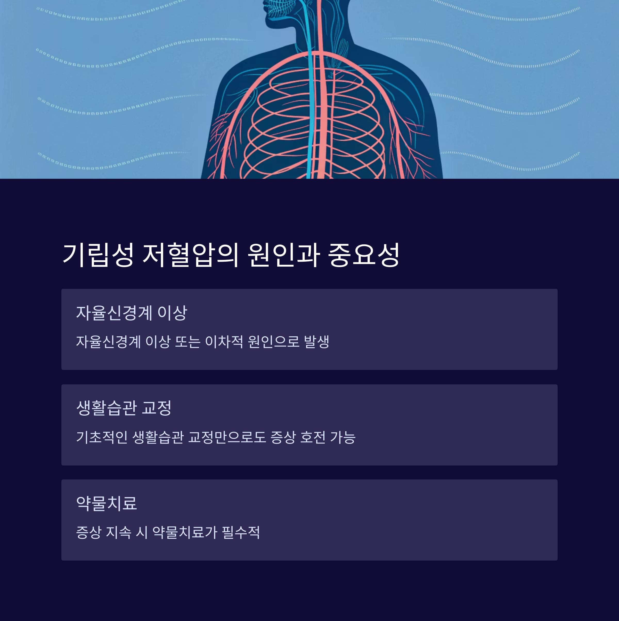 기립성 저혈압은 일어설 때 혈압이 급격히 떨어지며 다양한 증상을 유발하는 자율신경계 질환입니다