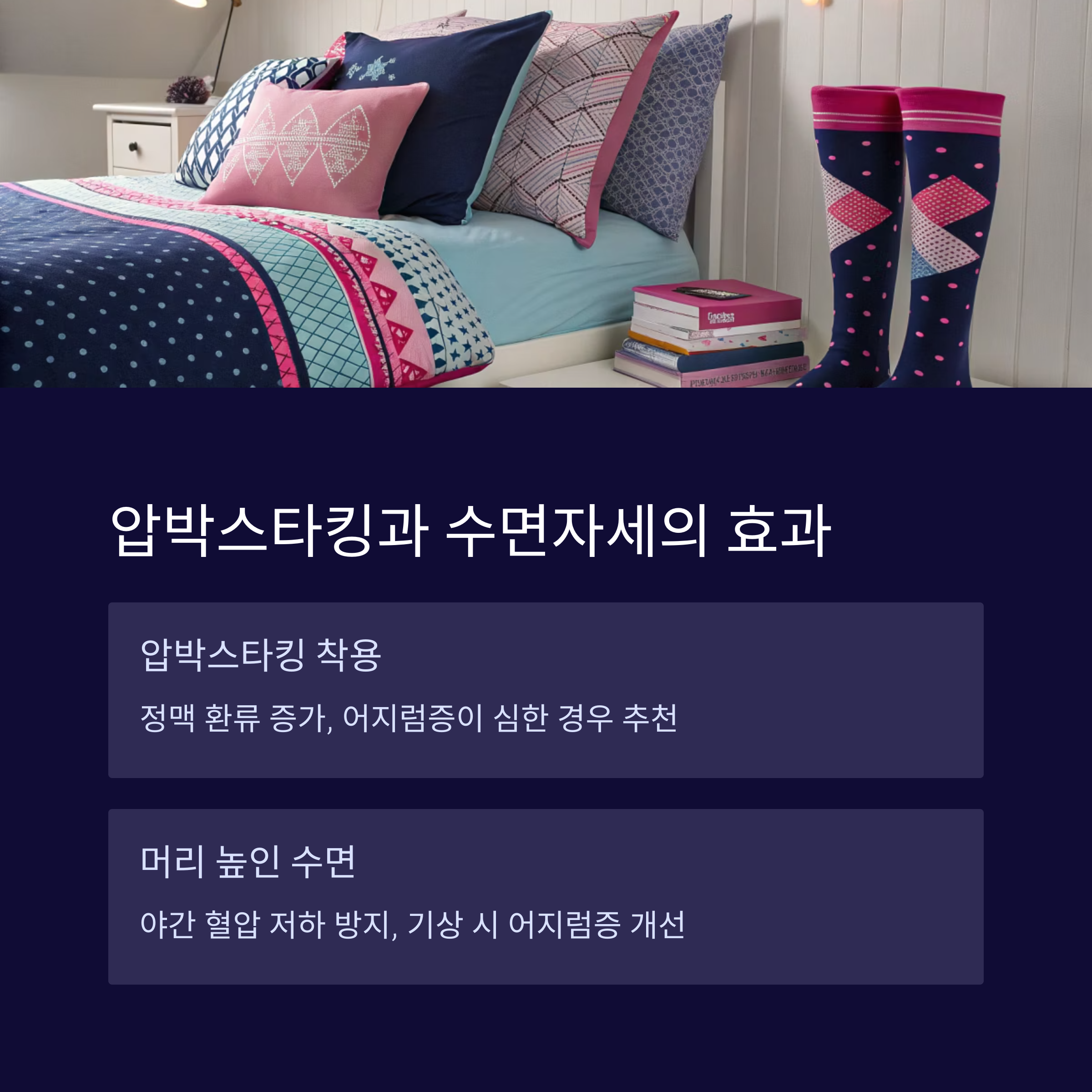 정맥 환류와 야간 혈압 조절에 큰 도움을 줍니다.