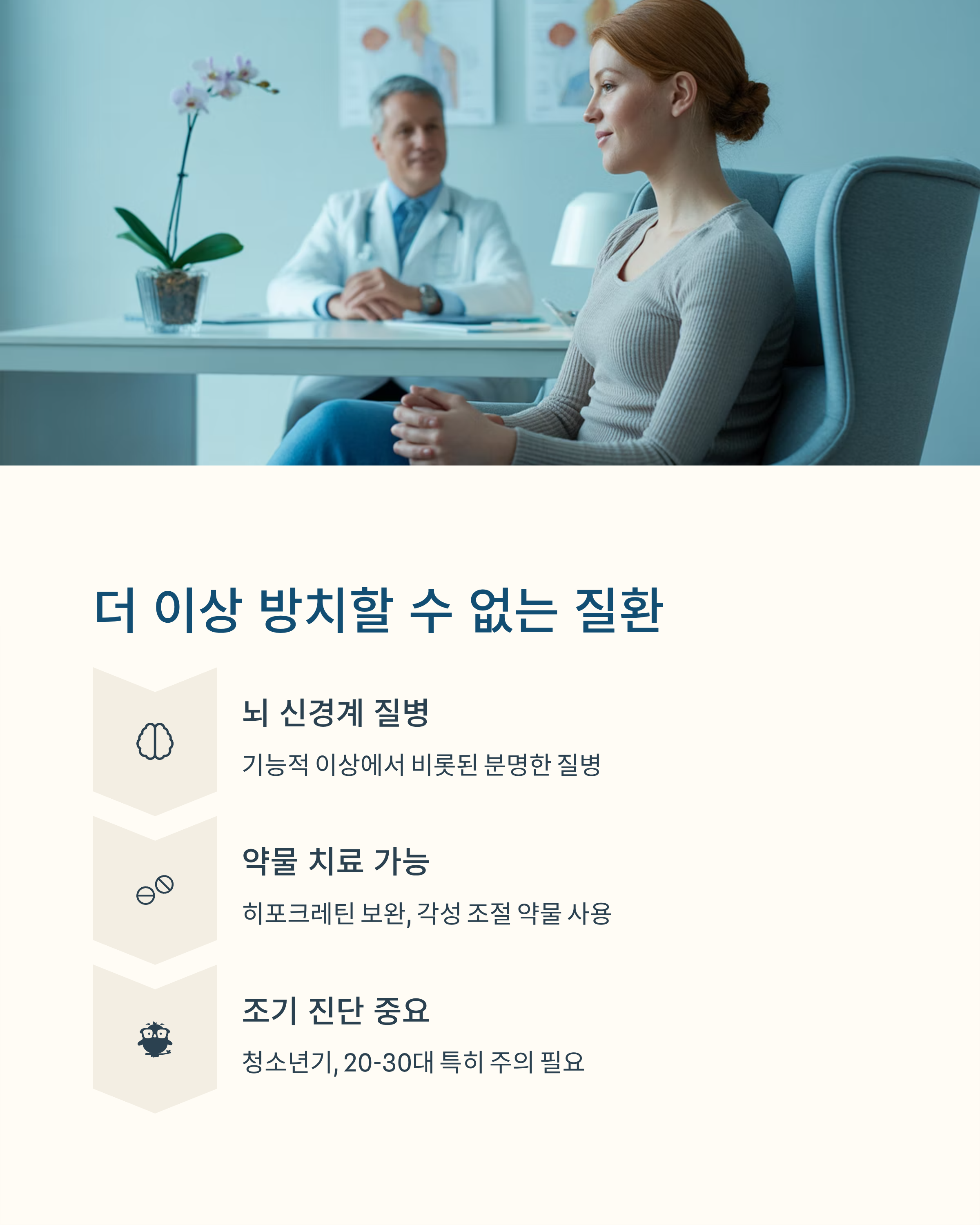 기면증은 뇌 신경계의 기능적 이상에서 비롯된 분명한 질병입니다. 치료는 히포크레틴 관련 기능을 보완하거나 각성을 조절하는 약물 등을 통해 진행되며, 조기 진단이 무엇보다 중요합니다. 특히 청소년기나 20대~30대처럼 사회적, 학업적 스트레스가 많은 시기에는 더욱 주의가 필요합니다.