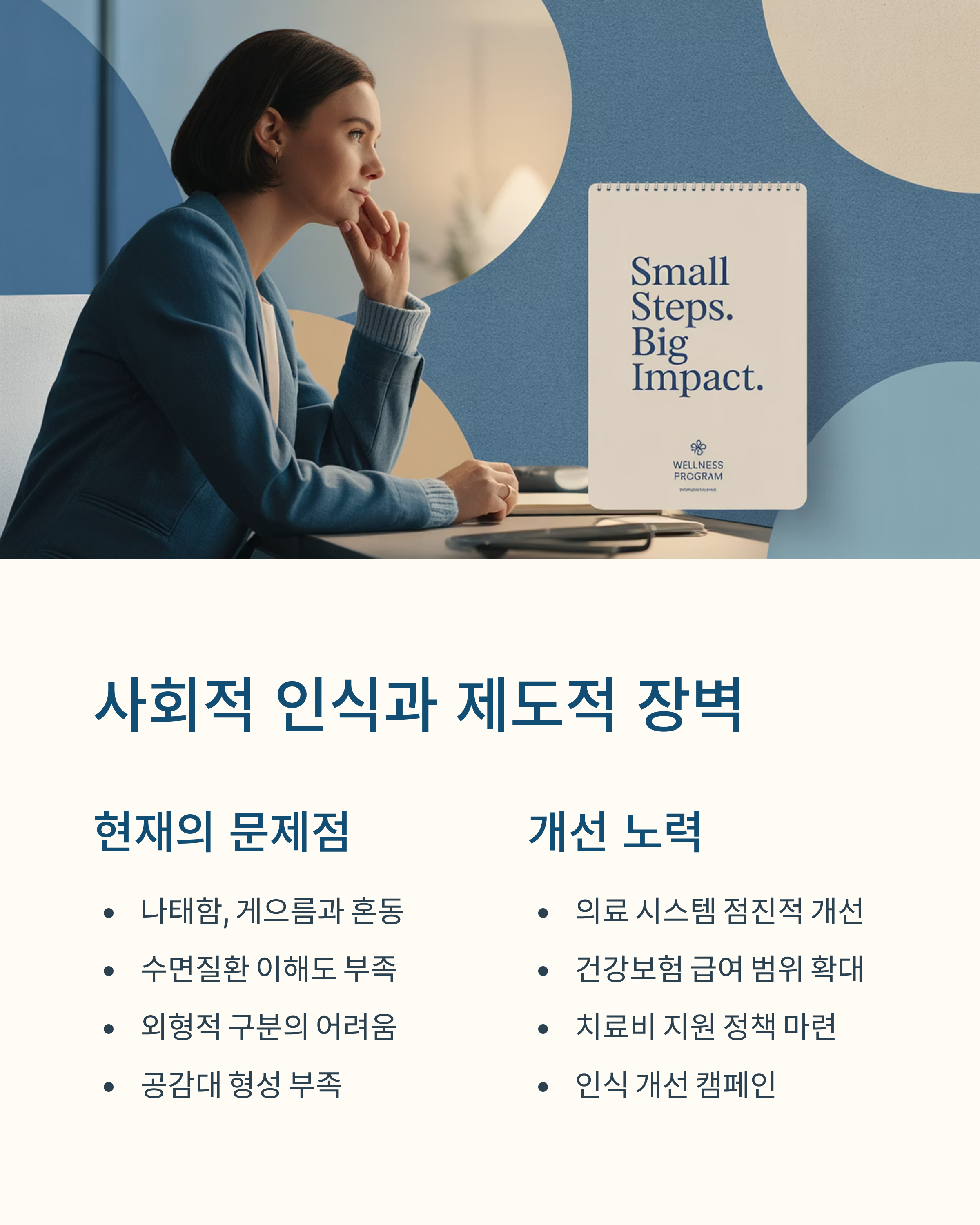 다행히 최근 들어 수면질환에 대한 의료 시스템이 점차 개선되고 있으며, 건강보험 급여 범위 확대와 치료비 지원 등의 정책도 마련되고 있습니다. 하지만 여전히 많은 이들이 진단 자체를 회피하거나 질환으로 인식하지 못하고 있는 현실이죠.