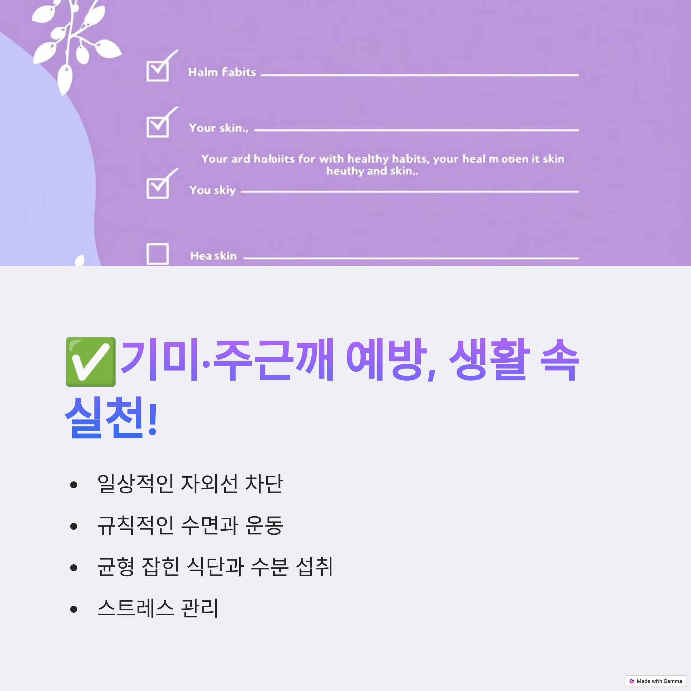 여러분도 기미·주근깨 예방을 위해 실천하는 습관이 있나요? 댓글로 공유해 주세요! 😊