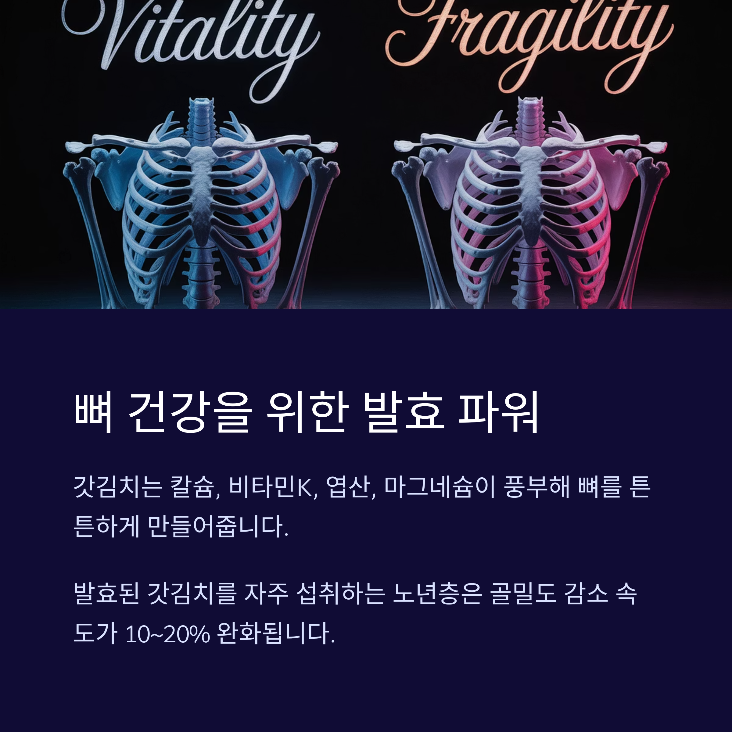 특히 발효된 갓김치는 체내 칼슘 흡수율을 더욱 높여주며, 갓김치를 자주 섭취하는 노년층에서는 골밀도 감소 속도가 10%~20% 완화된 것으로 나타났습니다.