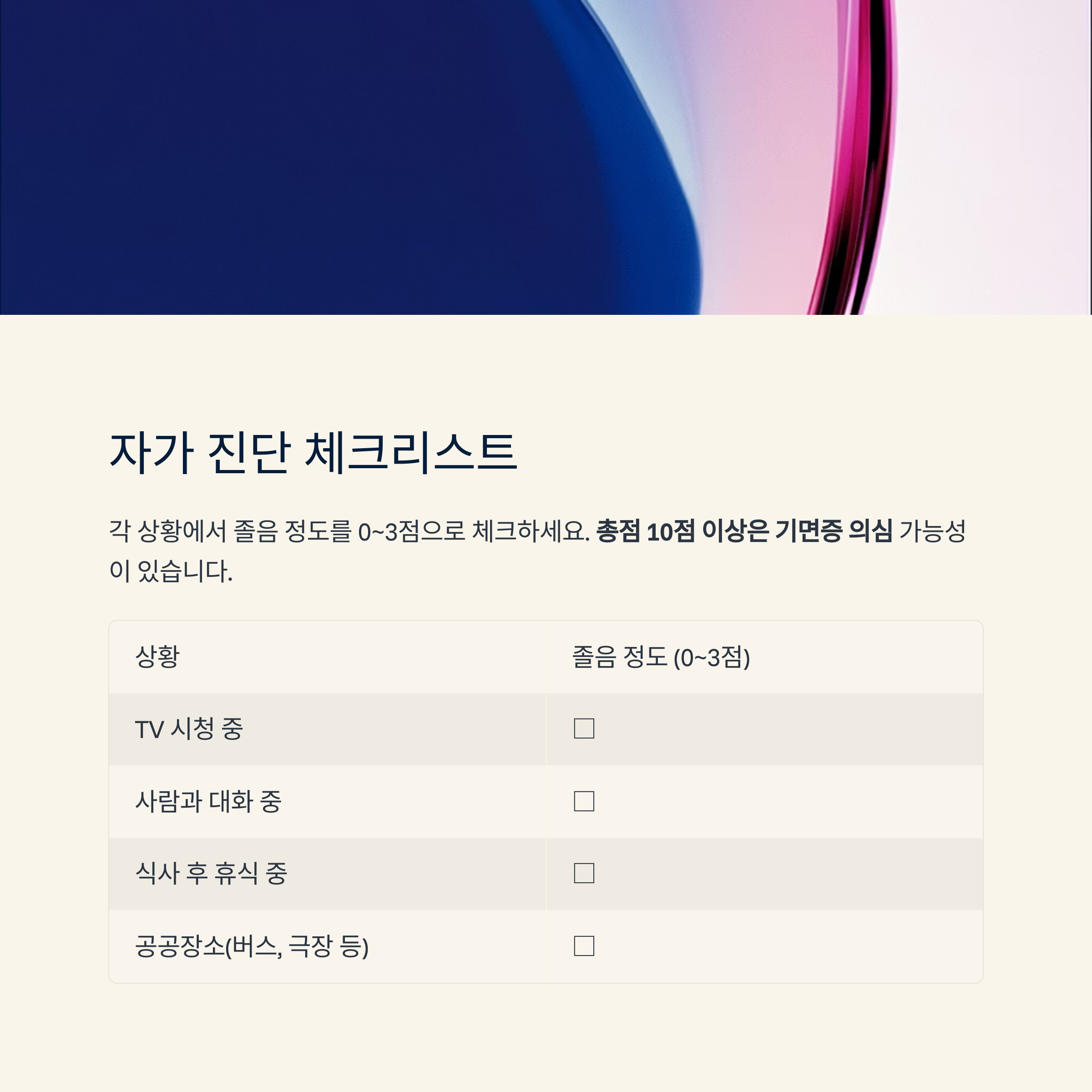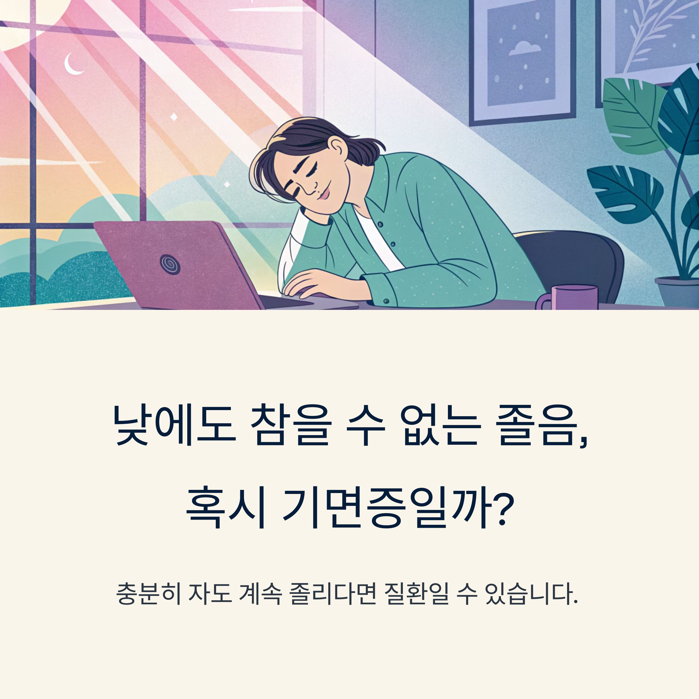 밤에 숙면을 취했음에도 불구하고 낮 동안 졸음이 계속된다면 단순한 피로로 넘기기 어렵습니다.