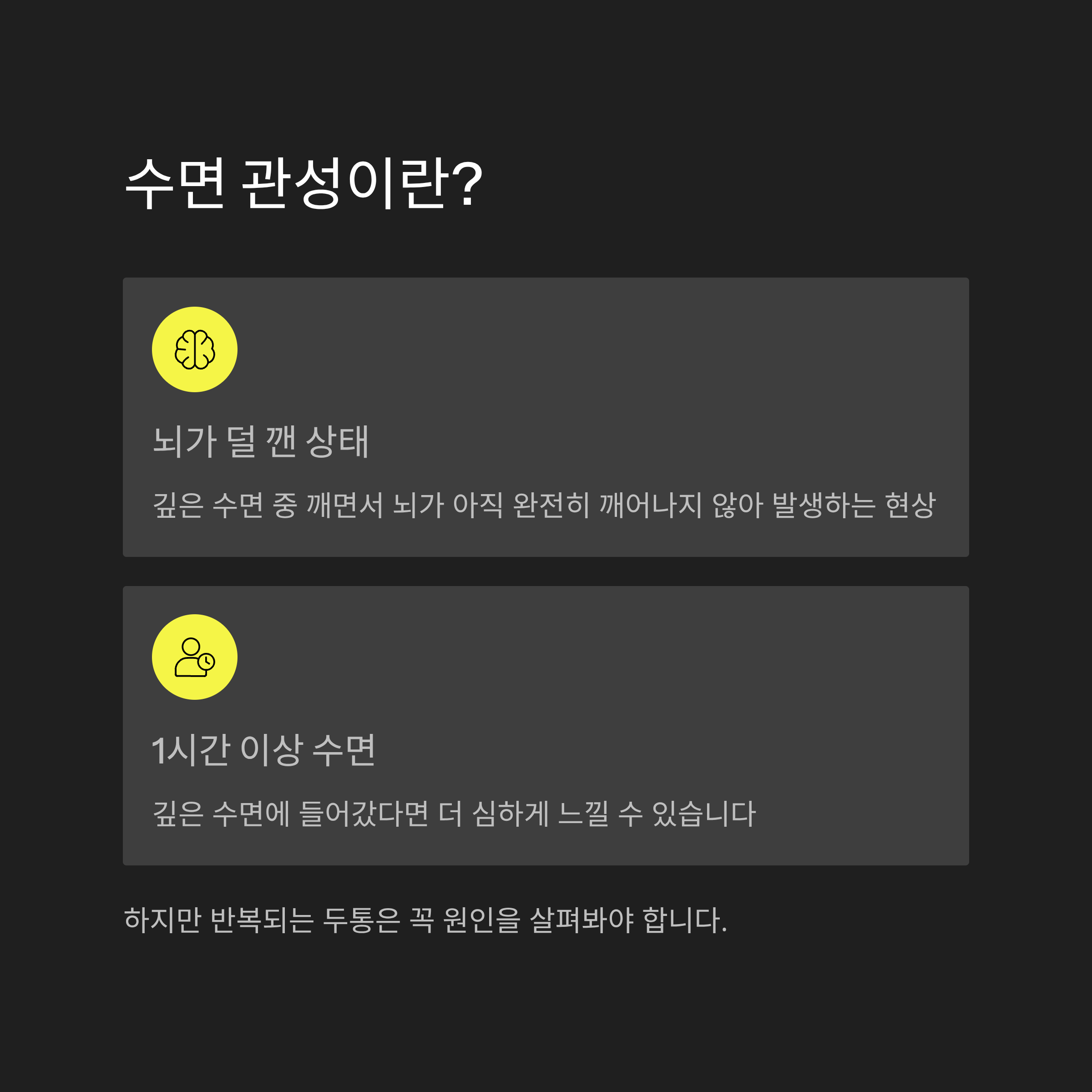 수면 관성은 깊은 수면 중 깨면서 뇌가 아직 완전히 깨어나지 않아 발생하는 현상이에요.